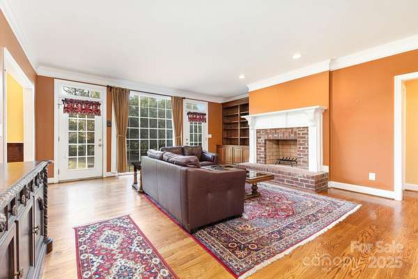 Grand 4BR/4BA full brick home situated on 10+ acres. The sprawling land includes a fenced area directly behind the home, a large private pond, and fully fenced, cleared pastures. Additional features include multiple outbuildings and mature fruit trees. The covered front porch opens to a spacious main level with gleaming hardwoods and stunning wood-burning fireplace. Three main-level bedrooms each have walk-in closets and full bathrooms. The kitchen features granite counters and a charming bay window. Upstairs offers a 4th bedroom, full bath, large bonus room, and walk-in attic for ample storage. Serene, private, and breathtaking setting, ideal for those seeking space, comfort, and natural beauty. This well-maintained property is country-living, just outside Charlotte. Don't miss the opportunity to make this retreat your own!