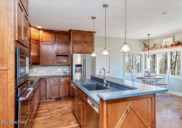Peace, privacy, and space to grow - all on 20+ wooded acres. This beautifully updated 4-bedroom + bonus room, 3.5-bath home delivers nearly 3,300 sq ft of finished living space, plus an additional 550 sq ft unfinished basement and a 2-car main-level garage - offering room for every phase of life. Enjoy a thoughtfully remodeled kitchen with quartz countertops, custom cabinetry, a travertine backsplash, and double dishwashers - perfect for both daily use and entertaining. The spacious main-level owner's suite features a walk-in closet and private full bath. Upstairs, you'll find three oversized bedrooms (all with walk-in closets), a full bath, and a large bonus room ideal for a home office, media room, or guest space. A convenient laundry chute leads directly to the main-level laundry. The partially finished, walk-out basement includes 400 sq ft of conditioned living space, a full bath, and an air-conditioned workshop with its own garage door access - a dream for hobbyists, tinkerers, or home business setups. Step outside to the covered wrap-around porch - perfect for morning coffee or evening sunsets. The expansive acreage offers wooded trails, natural beauty, and nearby access to Watts Bar Lake and Long Island Marina. Just minutes from I-40 and under 30 minutes to Knoxville and Lenoir City, this property is a rare blend of space, comfort, and convenience.