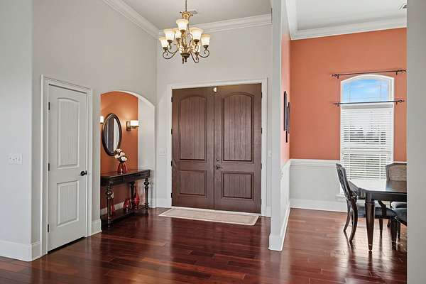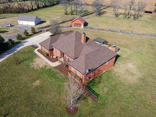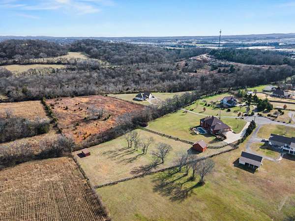 NO HOA! ONE OF A KIND! Outstanding Open Ranch Style Home with Full Finished Walk out Basement! Beautiful Private 6.43 acres. Home backs up to Wildlife Reserve! Bring your Horses and Four Wheelers! 3 Car Garage and an Additional Oversized 2 Car Garage/Barn. Beautiful Dark Claret Imperial Tigerwood Floors, Stone Fireplace, Soaring Ceilings, Kitchen has Cherry Cabinets and Granite Countertops, Kitchen is set up to view the Living Room, Breakfast Area, Covered Porch and land view Master Bedroom is oversized and has an oversized Walk in Closet with private laundry. Beautiful Tiled Shower in the Master Bathroom w/ Garden Tub & Separate Double Vanities. Separate Bonus Room on Main Level for those days you want everyone to watch those ballgames and you still have your private open living room with the Stone Fireplace. An Additional Two Bedrooms on the Main Level along with a Hall Bathroom with separate Tile tub and shower. There is another room on main level being used as an office or it could be a great library or Newborn Room. The amazing Covered Porch off of the Main area of the Home is so inviting for those private sittings in the morning or evening. The views from the Covered Porch overlook the pool and the private land along w/ viewing the Wildlife Reserve! The Covered Porch could be screened in very easily. Full Finished Walk out Basement has large Rec. Room for Pool Table & other game Tables. Also in the finished Basement could be an Oversized 4th Bedroom with Walk-in Closet, Separate Large Office with Built-ins, Exercise Room, Full Bath with an Amazing Tiled Shower that is Oversized, and a Movie Theatre Room. French Doors in Basement lead out to the In ground Pool area which is completely fenced. There is a separate Oversized Two Car Garage Detached / Barn along with a storage Shed and a Covered Shed for Horses or Equipment. Home has 3 different laundry areas. Great Neighborhood with country feel and still convenient to all your shopping needs.