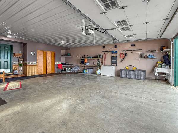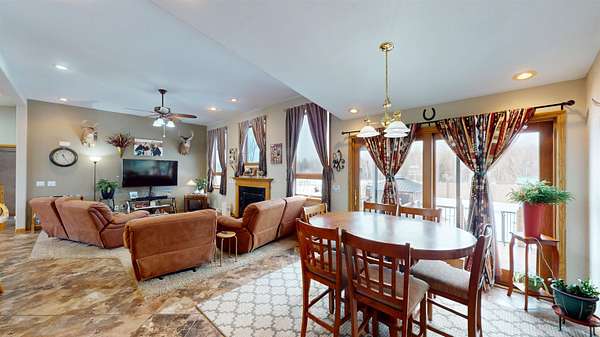 EXPERIENCE COUNTRY LIVING WITH SPACE & PRIVACY in this one-owner, 3-4 bedroom, ranch set on 9.741 scenic acres. Designed with comfort and functionality in mind, this home offers a desirable split-bedroom layout and quality updates throughout. The welcoming entry features a newer front door with sidelights and tile flooring, setting the tone for the warmly designed interior. The office is a great addition for work at home or study. The open-concept living room centers around a cozy gas log fireplace, creating ambiance and an inviting gathering space. The dining area is highlighted by ornate tile flooring and a newer patio door that leads to the composite deck - perfect for enjoying the peaceful countryside. The updated kitchen is well-equipped for everyday living and entertaining, featuring a breakfast bar, island, tile backsplash, walk-in pantry, china cabinet, tile flooring, and appliances included. The main level split-bedroom design offers privacy, with two bedrooms served by a full bath with skylight, while the primary suite includes a walk-in closet and a private bath complete with skylight, tub, and large, tiled, walk-in shower. The finished lower level expands the living space with a comfortable family room, game area with pool table, and a TV/entertaining space. A non-egress bedroom with daylight windows, full bath, and bonus room provide flexibility for guests or hobbies. Additional highlights include a metal roof, commercial-grade water heater, and an attached heated/finished two-car garage with a convenient half bath. Outside, the amenities continue with a stamped concrete front patio, concrete and asphalt driveway with 1 1/2 " Styrofoam insulation, wire mesh, and rebar under the concrete portion. For those needing workspace or storage, the property features a 40x60 commercial-grade shop with a concrete floor and a 16x32 wood stove building. The inground pool offers the perfect summer retreat, making this property ideal for entertaining and recreation. Ultimate UHP Home Warranty is included for added peace of mind. This exceptional property offers the rare combination of acreage, quality construction, and versatile living spaces. Schedule your private showing today to experience all it has to offer. *Not Included: freezer in garage, horse fencing/posts and gates, rock in front of property, hot tub. Included: washer, dryer, freezer in basement, armoire in storage room, refrigerator in garage. *Additional outbuildings and 9.741 acres may be available to purchase.