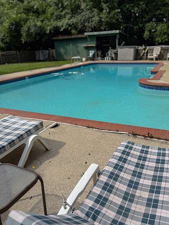 - Deck, Double Pane Windows, Fenced Yard, Guest House, Open Porch, Patio, Pier/Dock, Pool, Porch, Stone Driveway