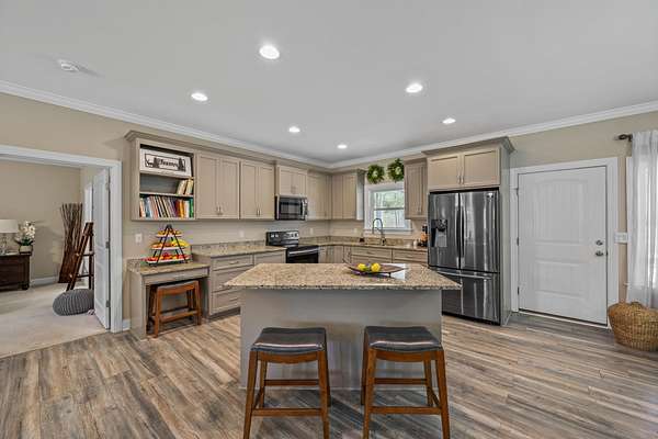 - Bedroom On 1 st Floor, Ceiling Fan(s), Kitchen Island, Pantry, Primary Downstairs, Snack Bar, Solid Surface Counters, Walk-In Closet(s)