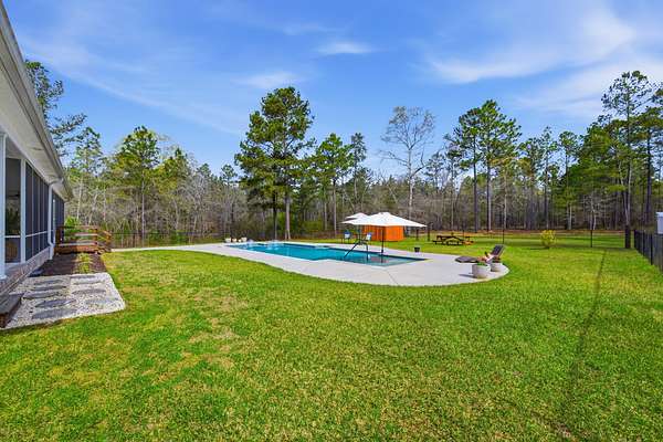 If you've been waiting for space to breathe, room to roam, and a place that feels like your own private world--this is it. Welcome to 2229 Andrews Circle in Aiken, South Carolina, where 29.53 acres create a lifestyle rooted in freedom, privacy, and possibility. Mornings unfold on the porch, afternoons drift by the pool, and evenings bring a quiet you didn't realize you were missing. This is Southern living made easy--wide porches, open skies, and land ready for your vision. Whether you're seeking a homestead, horse property, hobby farm, or private retreat, this property delivers flexibility and space. The acreage blends wooded privacy with a couple of acres open land, ideal for pastures, farming, trails, or recreation. Located on Aiken's southside near Charleston Highway (Hwy 78) in a desirable equestrian corridor, you'll enjoy convenient access to Southside amenities and Downtown Aiken--a rare balance of seclusion and connectivity. Built in 2019, this custom one-level home offers 1,865 sq ft with an open split-bedroom floor plan, plus an additional 372 sq ft laundry/flex space (total 2,237 sq. ft). The kitchen features abundant cabinetry, granite countertops, center island, and walk-in pantry, opening to a spacious great room with a brick fireplace and wood mantle. LVT flooring flows through the main areas. Dining is flexible--formal or al fresco on the screened or covered porch. The primary suite offers a serene retreat--an inviting space to unwind and recharge--with a double bowl granite vanity, relaxing tub, walk-in shower, and tile floors. Guest bedrooms are well-sized with easy access to a full bath. Nearly 1,400 sq ft of covered porches, including a screened porch, extend your living outdoors. The saltwater gunite pool features a sundeck, built-in benches, and expansive decking--perfect for entertaining or unwinding. A 372 sq ft laundry and flex room with tile floors, utility sink, and ample storage adds exceptional functionality, ideal for country living. The 642 sq ft two-car garage with service door enhances convenience. There is perfect place ready for RV hook up and extra covered storage nearby. Zoned RUD (Rural Urban Development) with no HOA and minimal restrictions, this is true freedom--bring your horses, start your farm, or simply enjoy wide-open living. Aiken SC acreage home, horse property, homestead, farm property, private estate--this is where it all comes together.