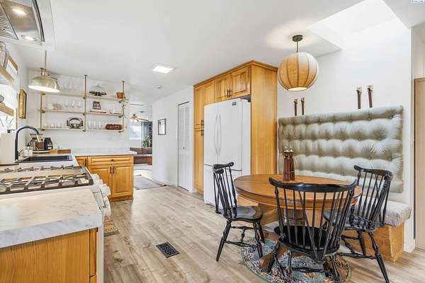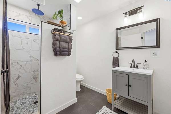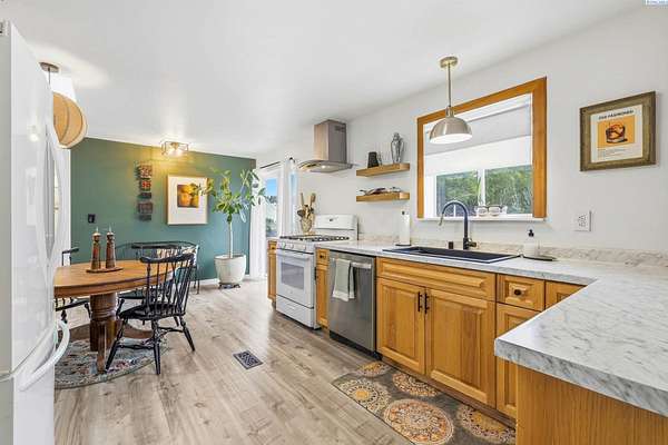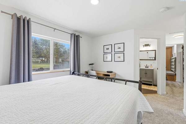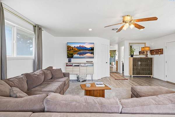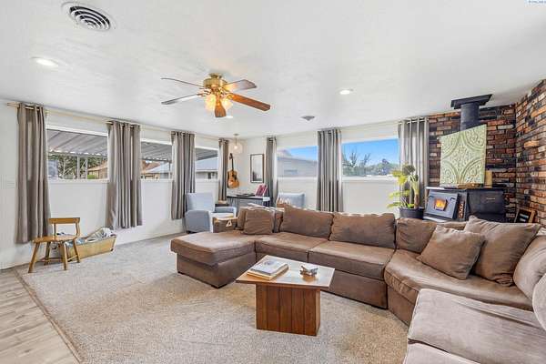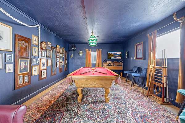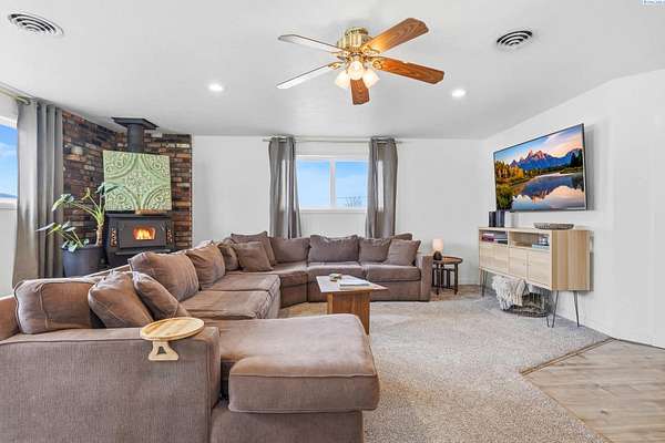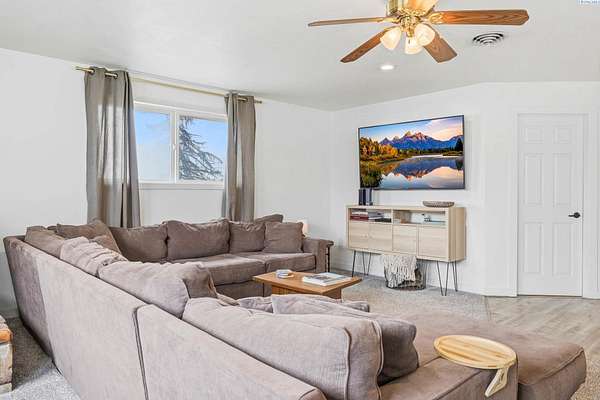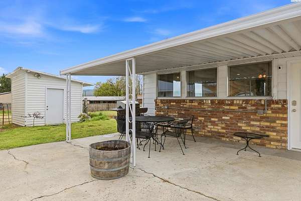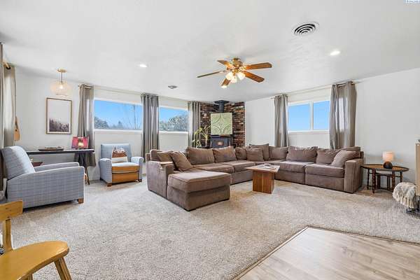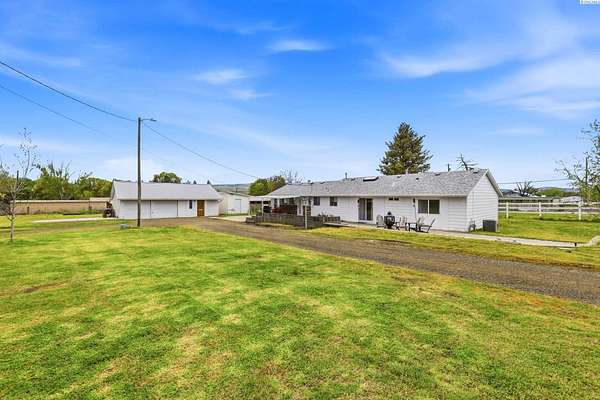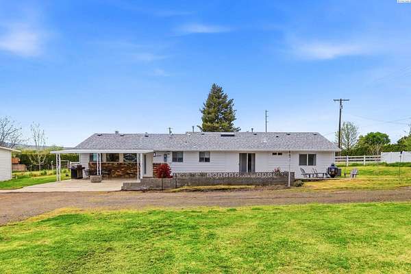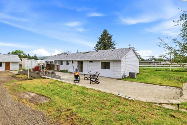 MLS# 292160 A rare single-level opportunity offering true ensuite living, this 3 bedroom, 3.5 bath home features a private bathroom for every bedroom, creating ideal separation for guests, roommates or multi-generational living. Currently operating as a turn-key Air BnB (may be sold with all furnishings for additional fee), it also lends itself beautifully as a personal retreat. The spacious great room is filled with natural light and anchored by a freestanding wood fireplace on a raised hearth. A convenient half bath sits just off the main living area. The kitchen and dining space are designed for gathering, with a covered patio that extends your living outdoors--perfect for BBQs and entertaining. Set on 1.56 fully fenced, irrigated acres, the property is ready for animals, gardening or simply enjoying wide open space. A newly added heated and air-conditioned billiard hall offers a fun place to gather and enjoy some pool, or convert this flexible space to use as a shop, gym, office or hobby space. Major updates include all new electrical (2024), plumbing (2024), and roof (late 2025), HVAC (2015). The property is serviced by its own well and septic. While no value is assigned to the existing 1971 singlewide, talk to your Realtor about options offering future living space and potential income.
