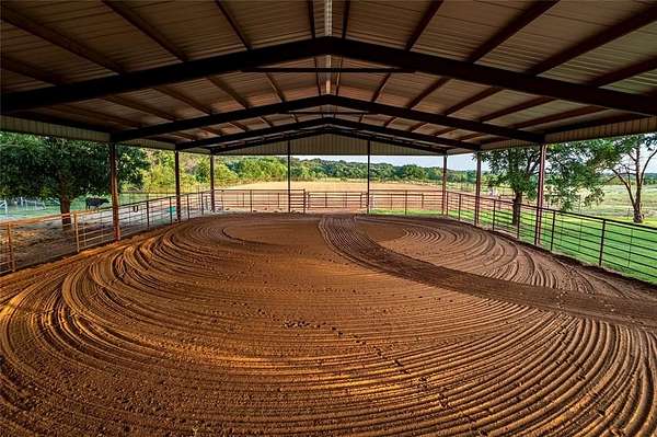 Est $5,006/moEQUESTRIAN DREAM!! 12,000 sq ft covered arena w concrete floor & tack room PLUS an additional open arena, hay barn with concrete floor, 4 bay carport, covered corrals, with several additional buildings. 16 acre coastal field producing 130-150 round bales annually. Fenced, and cross-fenced with several pastures to turn out your horses or other livestock. 3 Bedroom house with new exterior paint. Property is completely fenced and cross-fenced. Paved county road to the property.