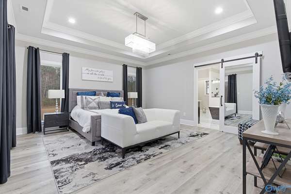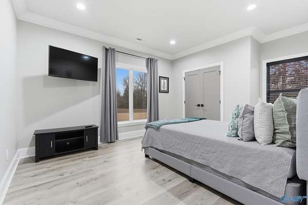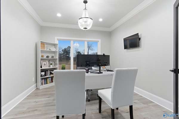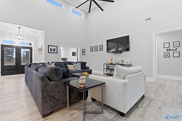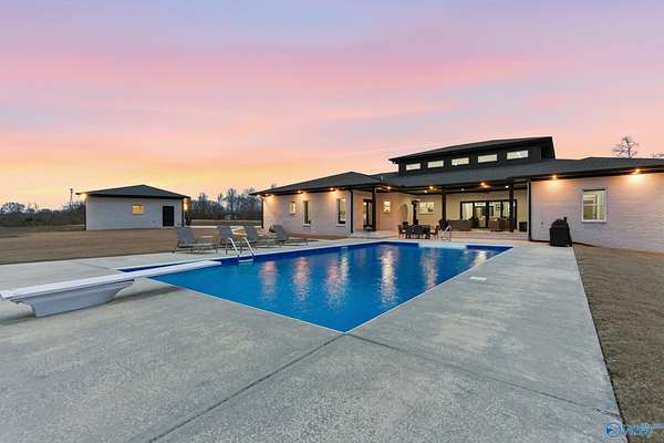 Welcome to your PRIVATE RESORT! Built 2023, this breathtaking 3,000SF modern masterpiece sits on 13+ gorgeous acres. Dive into your 20x40 saltwater pool, host unforgettable gatherings & soak in spectacular outdoor living year-round. Inside, soaring 18ft ceilings, abundant natural light & spray foam insulation keep you comfortable year-round. Gourmet kitchen features quartz, granite & GE Cafe appliances. Premier tile in all baths, walk-in pantry, spacious dining, private office & generous storage. 2-car attached garage plus powered 3-car detached with double bay-ideal for boat storage. Ring cameras, security system & safe room included. Easy drive to Huntsville & the Shoals. You deserve this!