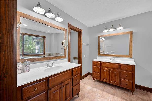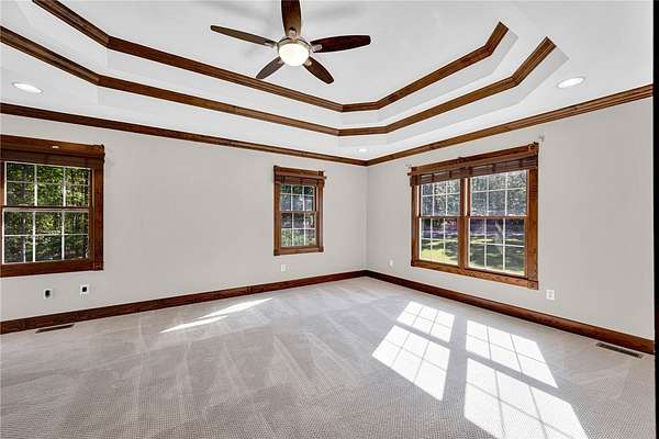 - Bath In Primary Bedroom, Breakfast Area, Cable TV, Cathedral Ceilings, Ceiling Fans, Dual Sinks, Fireplace, High Ceilings, Jetted Tub, Main Level Primary, Separate Shower, Solid Surface Counters, Tray Ceilings, Vaulted Ceilings, Walk In Closets, Walk In Shower, Window Treatments