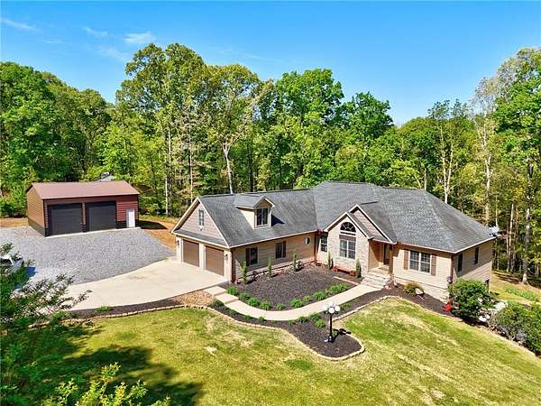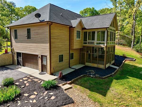 Looking for a spacious home with a great floor plan, multiple garages for your cars, boats and toys AND a large lot in a lake neighborhood? Welcome to your new home at 223 Brooks Drive in Townville. Situated on a 1.63 acre lot this 4 bedroom home has an upper attached two car garage, a lower attached deep two car attached garage PLUS a 2 car detached shop/garage on a concrete slab. The main level offers a living room with hard wood flooring and vaulted ceilings with a gas log fireplace with a custom made mantle carved locally. Transition from the living room to the rear sunroom which is the perfect spot to relax in the evenings. The owner's suite is on the main level with a large bedroom which will easily accomodate a king bed with double tray ceilings, wood blinds and hunter ceiling fan. The ensuite provides a large walk in closet, linen closet, dual vanities with lots of storage, a jetted tub and walk in shower. Two additional guest rooms on the main level each have walk in closets and share an updated full bath with shower tub combo. Meals will be a breeze in the kitchen with solid surface countertops, tile flooring and a full, stainless appliance package including stove, microwave, dishwasher and french door style fridge all newly installed in 2025! Adjoining the kitchen is a well designed laundry room with storage galore with direct access from the upper 2 car attached garage. The upstairs hold a nice surprise with a large bonus room with closet and private full bathroom which would be a nice teen suite with privacy. Enjoy family meals in the formal dining room with vaulted ceilings. Retreat to the lower level for a large recreation room with a freshly updated pool table, a private office space, tv room and a half bath. Step out onto the rear screened porch to enjoy the solitude. Enjoy boating? The huge lower level attached two car garage has a depth of 31 feet to hold your tools or toys. The interior of the home has been freshly painted in April. Located in the award winning Pendleton High School district. Schedule your private viewing today.