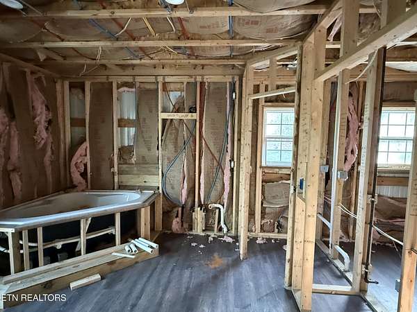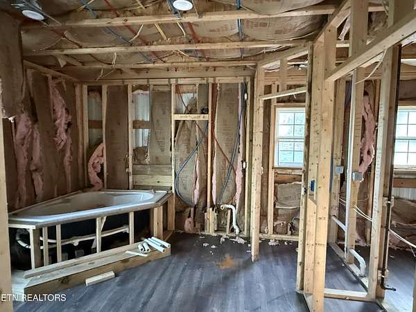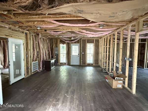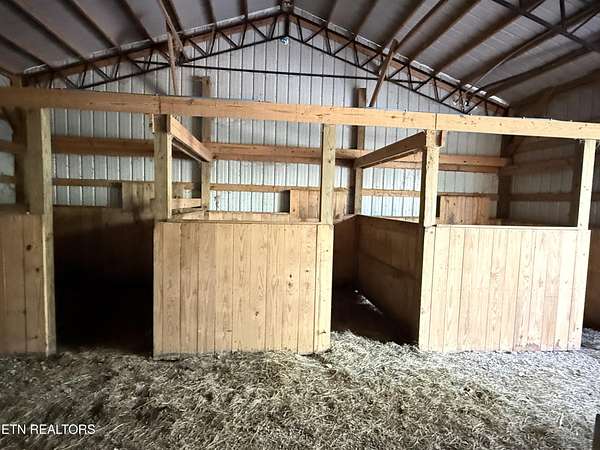 Looking for a project? This 1 bedroom, 1 bath barndominium sits on approximately 1.95 level to rolling acres and is ready for completion. Property features 4 horse stalls with tack area, making it ideal for equestrian use. The home is partially finished, allowing the buyer to customize finishes to their preference. Exterior amenities include a circle driveway, 2 RV hookups with electric and water, plus 2 additional 50-amp hookups. Located within a development offering riding trails, with direct access to miles of additional trails in Big South Fork.