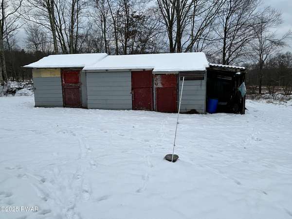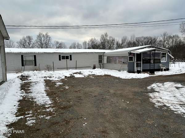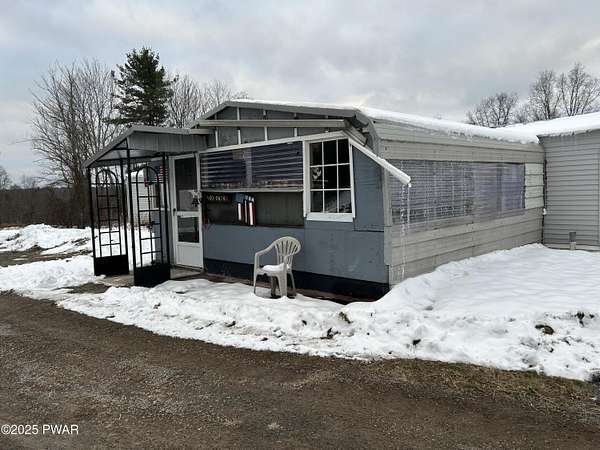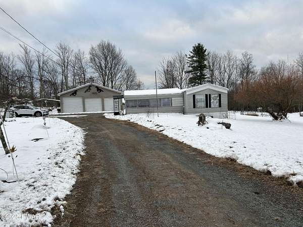 Hawley, PA - 2.86 Acres in a rural setting with a private pond! Featuring a 2-bedroom, 2 bath mobile home with a spacious enclosed porch, perfect for an outdoor living space, 3 car garage and numerous outbuildings, fenced in garden area and a private well and septic system. The property is stunning with a driveway that feels like a private lane that leads to the mobile home and 3 car garage. The mobile home needs work, tear it down and build your dream home or this project would be great for an investor or someone handy. This property does not qualify for a mortgage due to the age of the mobile home. Bring your tools and make this your dream location!