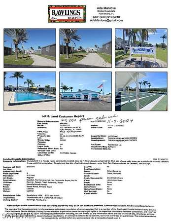 Est $441/moThunderbird is a Mobile Home community located close to Ft Myers Beach on San Carlos Blvd, lots of new units being put in.this lot is situated between 2 new units being installed. Thunderbird has lots of activities and dinners. enter from San Carlos and cont on Derwent, look for sign.