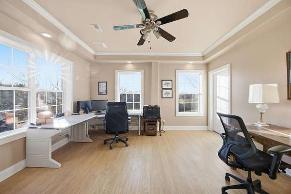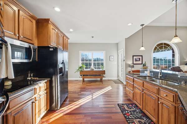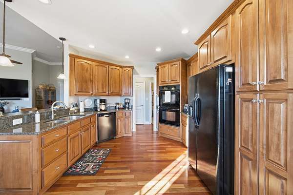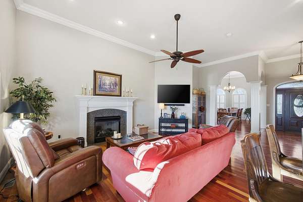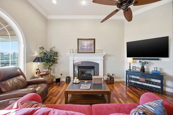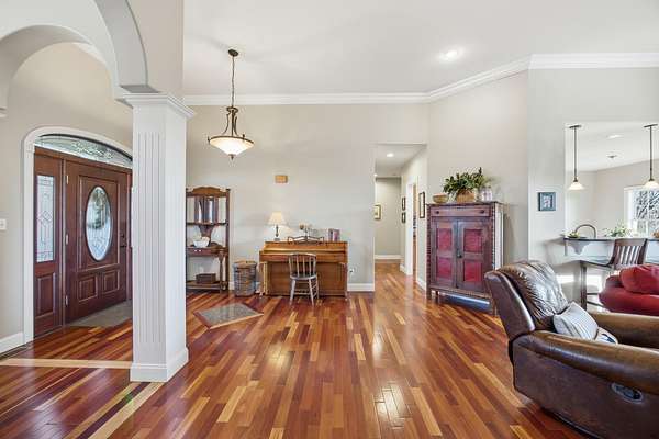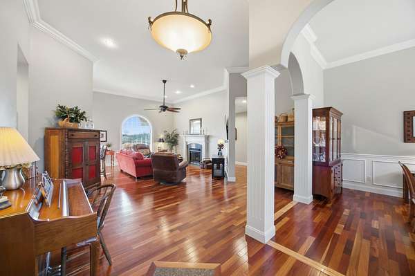 For the first time ever, 223 Dudley Court, built in 2006, is on the market. Before you do anything else, take the time to see this masterfully constructed raised ranch offering 4 bedrooms and 3.5 bathrooms, complete with a fully finished basement and custom sound-proof theater room. From the moment you enter, the quality of construction immediately makes itself known. 3/4-inch thick Brazilian hardwood flooring runs throughout the main level living spaces, setting the tone for the craftsmanship found throughout the home. The beautifully designed formal dining room is perfectly sized for gatherings of any kind, making it an ideal place to bring people together. Ten-foot ceilings and thoughtful attention to detail make it clear this home was built with intention. Just beyond the dining room, the comfortable and inviting living room welcomes you in. This is the perfect place to unwind, watching the sunset while enjoying the warmth of the fireplace. Unlike many homes from this era, this kitchen allows you to enjoy your guests while they relax in the living room. The kitchen's breakfast nook is a special feature where conversations flow, time slows down, and memories are made. Step out onto the back deck and all of your worries disappear, such an incredible view. Tucked away at the back of the home, the primary bedroom offers a true sanctuary. The expansive primary bathroom and large attached closet complete this private retreat. All of this and we have not even mentioned the other 3 bedrooms and 2 full bathrooms! As you head downstairs, the customized stairwell immediately catches your eye. The basement opens up an entirely new level of living, featuring an additional bedroom and full bathroom, making it perfect for both short-term and long-term guests. The open floor plan creates space for entertaining, relaxing, and everything in between. And then comes the showstopper, the custom theater room, offering a true cinema experience without ever leaving the comfort of home. This home truly has it all, and no words or photos can fully capture what it feels like to see it in person. Schedule your private showing before it's too late, a home like this is a rare opportunity and a true gift to experience.