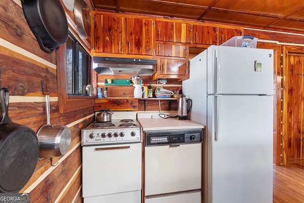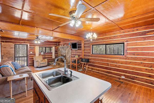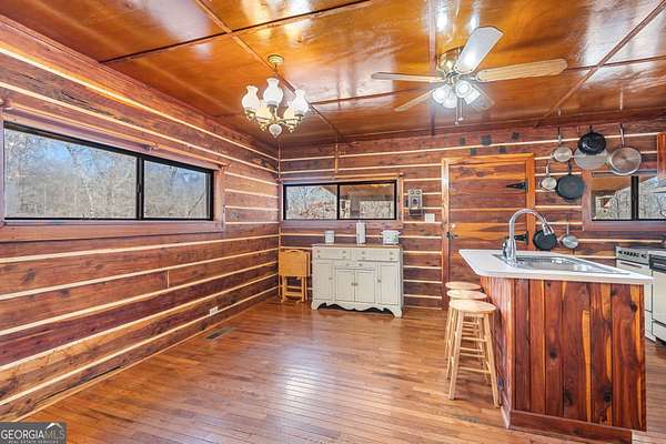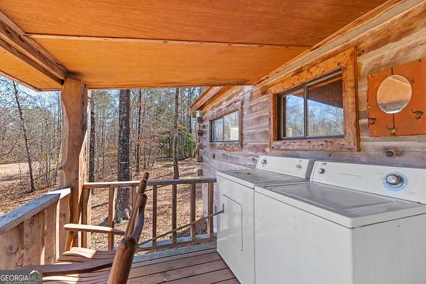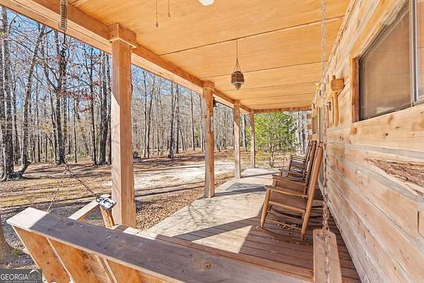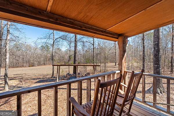 Rustic Cedar Log Cabin on 95.45 acres- A TRUE PRIVATE RETREAT! Nestled on 95.45 breathtaking acres, this authentic cedar cabin offers the perfect blend of rustic charm and modern comfort. Built using trees harvested directly from the property, the cabin features a welcoming rocking- chair front porch and real hardwood floors throughout. The MAIN level includes an open living area with wood burning fireplace accented by a beautiful stone surround, kitchen with island and sink, 2 bedrooms and 1 full baths. All appliances remain to include washer and dryer. Upstairs, a ships ladder leads to a flexible loft space featuring 1 bedroom and 1 full bath- ideal for guests, an office or a cozy retreat. Recent upgrades include: added heat pump (2020) and air conditioning (9/2025) and replaced well pump. A metal roof adds durability and low maintenance. The daylight basement offers addt'l usable space, while covered back porch is perfect for enjoying peaceful views of the land. The property boasts three fields, two creeks and prime hunting land, making it ideal for the outdoor enthusiasts, homesteaders, or those seeking privacy and tranquility. All beds, linens, couch, chair, & kitchen pots/pans/ cooking utensils remains- making this property truly move in ready.
