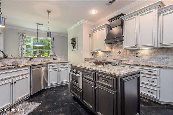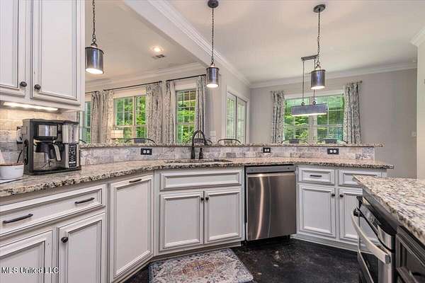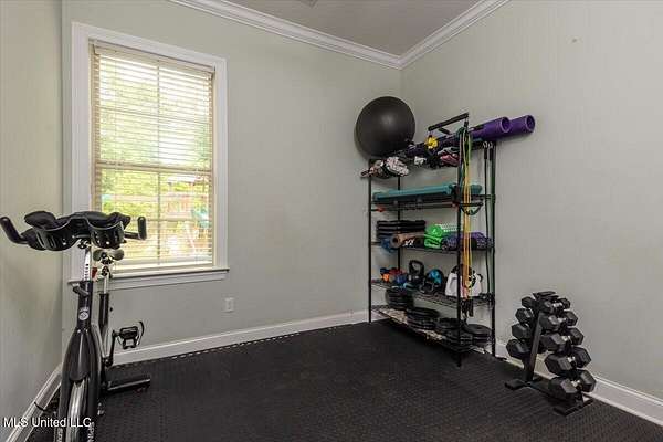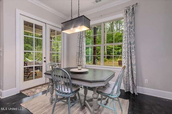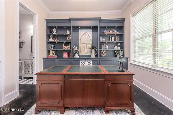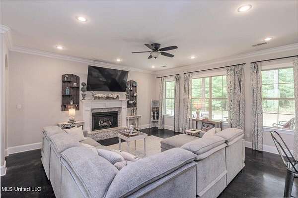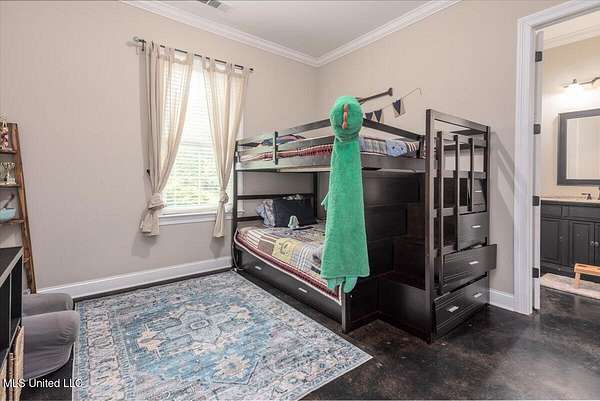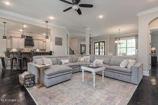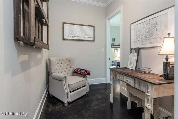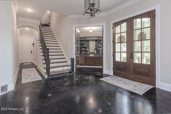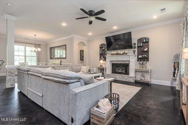 Welcome to 223 Fawn Cove in the sought-after Morrow Crest Subdivision in Hernando-where space, comfort, and style come together on nearly 3 beautiful acres. This 4000 sq ft home has room for everyone with 3 bedrooms downstairs, including a split master suite with a workout room/baby's nursery nearby, plus an office that could easily be a 4th bedroom. You'll find 3.5 bathrooms downstairs, including a Jack-and-Jill bath, a full bath near the office, and a luxurious master bath with a double vanity. The open kitchen is a showstopper with beautiful cabinets, granite countertops, a large island that seats six or more, and a wood accent knee-board. The kitchen, dining, and living areas flow seamlessly with stained concrete floors, wood-beamed ceilings in the master, and plenty of windows to let in natural light and showcase the view of your stunning property. There's a cozy nook off the garage with a bench and storage area, a spacious laundry room with cabinets, and a covered front porch that welcomes you in through double doors. Out back, enjoy the large covered porch perfect for relaxing or entertaining, with access directly from the master bedroom. Upstairs, you'll find three separate game rooms, including a 14x8 landing, a 15x12 game room, and a 20x8 space with built-ins and a half bath. Storage is no issue with a large floored walk-in attic and a 3-car garage, each with its own door. This home has been thoughtfully designed, and is ready for its next chapter-come see it for yourself!