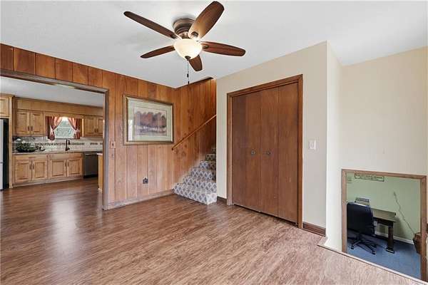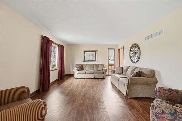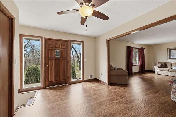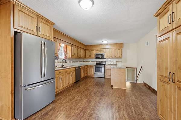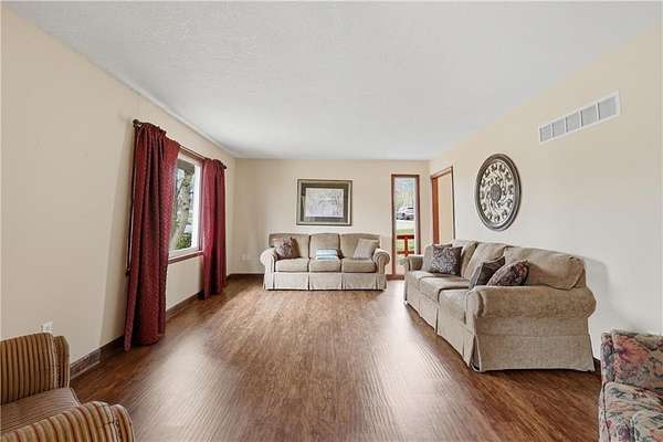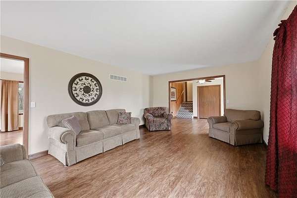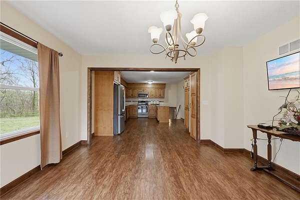 Nestled on 3.48 scenic acres, this 4 bedroom, 3 bathroom side-to-side split offers the perfect blend of privacy, space, and opportunity. Surrounded by mature trees with a peaceful pond on the property, this setting provides a quiet, country feel while still being conveniently located. Inside, you'll find spacious living areas, a functional layout, and plenty of natural light throughout. The kitchen offers ample cabinet space and flows easily into the dining area, making it ideal for everyday living or entertaining. The finished lower level features a cozy fireplace and additional living space, perfect for a second family room, recreation area, or home office. Step outside and enjoy everything this property has to offer-from the expansive yard to the outbuilding/shop, providing plenty of room for hobbies, storage, or equipment. With nearly 3.5 acres, there's endless potential for outdoor living, gardening, or simply enjoying the peaceful surroundings. This home is being sold AS-IS, making it a great opportunity for buyers looking to add their own personal touches and build equity in a beautiful setting. Don't miss your chance to own acreage, a pond, and a home full of potential!