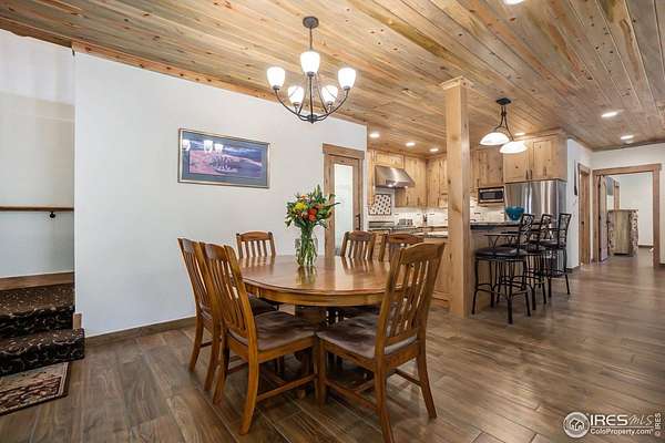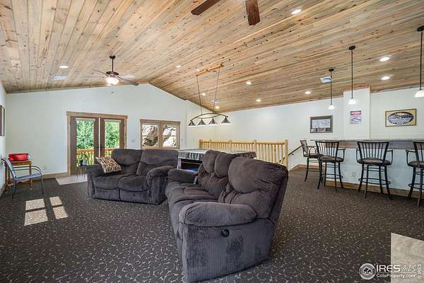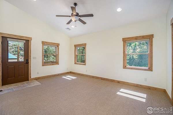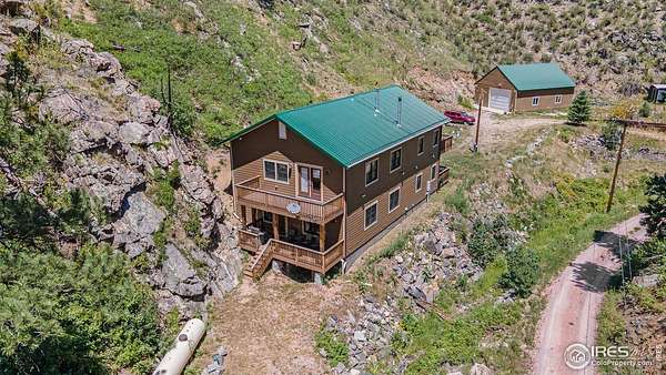Price Reduced! This home is truly one that must be seen to appreciate its finer details. Come explore the exceptional interior of this delightful modern home located in Poudre Canyon, just 30 minutes from downtown Fort Collins. Equipped with top-of-the-line finishes, this property features durable porcelain floor tiles on the main level and custom tile work throughout. The spacious upper family/game room adds to its appeal, making this home a must-see. The main-floor primary bedroom includes a bathroom with heated floors and a large walk-in/roll-in shower. Vaulted blue pine wood ceilings in the main living and family room areas provide an elegant mountain touch, complemented by the detailed tile work in the kitchen, which comes with high-end appliances and a heated floor. Constructed with safety in mind, the home features concrete fiber Hardie-Plank siding on both the house and garage. There is also easy access to a 6-foot-tall concrete crawl space, complete with an over-engineered pressure tank and cistern system. For a comprehensive list of custom finishes and upgrades, please refer to the additional documents. The property includes a spacious garage/workshop (1,300 sq. ft.) equipped with 220v power and workbenches, perfect for your hobbies. It also offers a 16x11 overhead door and a loft space (370 sq. ft.). Situated on a 6.5-acre lot just 1/4 mile from the Poudre River, this home could be the mountain homeowner's dream. Be sure to take a look at the video tour and visit this beautiful home and property!