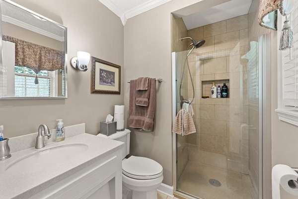 - Breakfast Bar, Ceiling Fan(s), Eat-In Kitchen, Entrance Foyer, Primary Downstairs, Walk-In Closet(s)