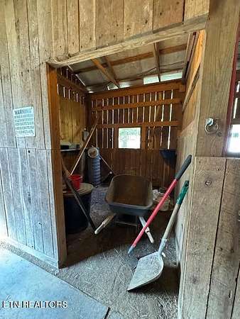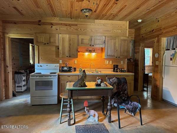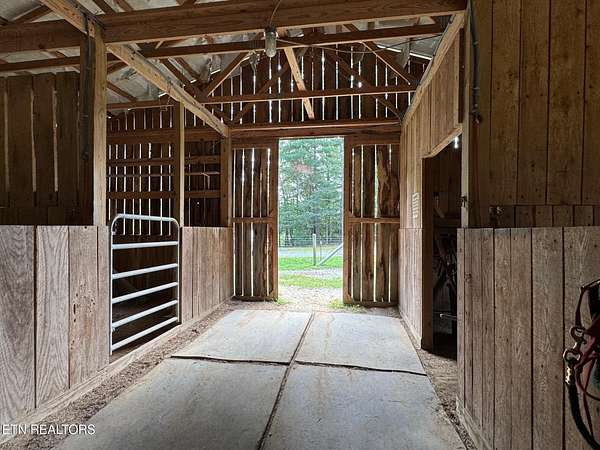 Saddle up and ride your horses into the Horse Trails leading into the Big South Fork Park! Cabarn Style home on 3.09 +/- acres has 1 bedroom, 1 bonus room, 1 bathroom with open floor plan , concrete flooring, includes Range oven, refrigerator, washer & dryer. New water heater installed 12/10/2025. There is a propane heater on wall (will need to have a propane tank set up), wood burning stove (seller has never used). Property is fenced with 2 pastures. 2 Rv set ups that seller has never used. Nice run in shed with under roof insulation., smaller run in shed also. Attached barn with storage room, hay area, and 3 stalls. 8.38 +/- acres adjoining this property is also for sale. Buyer to verify all information and working condition in order to make an informed purchase.