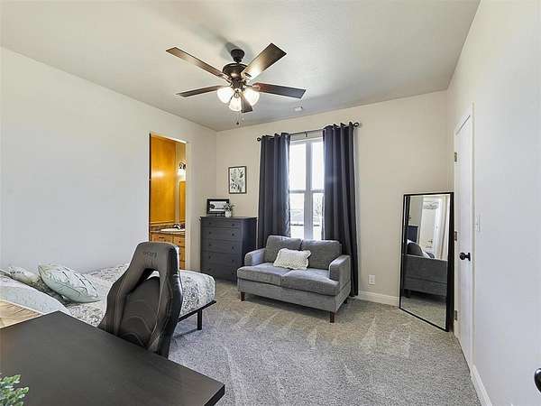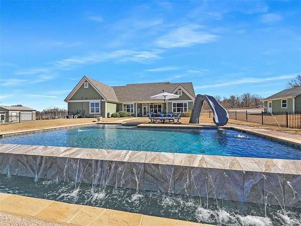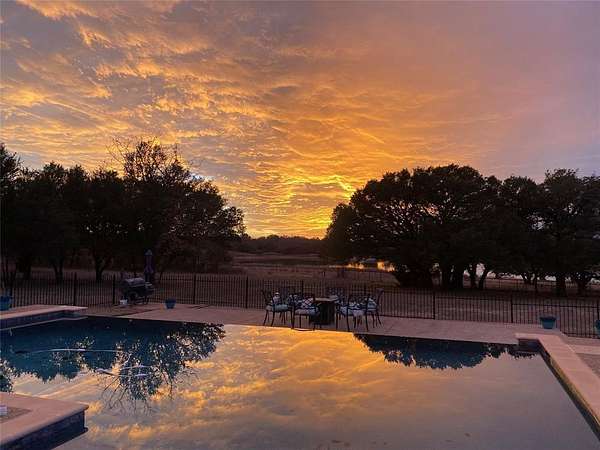 Primarily one-story home on just over 3 acres provides ideal space for hobbies, equipment, gardening, or simply enjoying the privacy and views around the lake. Adjacent 3 acre tract also available (MLS #20877045). Purchase both properties together for approximately 6 acres total. This energy efficient home has 60 OWNED solar panels and battery backup designed to offset most, if not all, of the electric bill. All main living areas and bedrooms are downstairs with only a private guest suite and full bath upstairs. This 4 bedroom plus office, 3.5 bath home offers 2,550 sq ft with high ceilings, oak flooring in the living and dining areas, tile in the kitchen, baths and halls, with vinyl picture windows throughout. Living room features a gas fireplace with granite surround. Kitchen includes custom maple cabinetry and granite countertops and opens to both the living and breakfast area. Dedicated office with built-in desks. Private primary suite with safe room & storm shelter closet. Two bedrooms share a Jack & Jill bath with granite countertops, while the upstairs bedroom and full bath offer a private space ideal for guests or multigenerational living. Walk-in floored attic offers excellent storage. Structural Insulated Panel construction for added efficiency. Central vacuum. New AC in 2023 and upstairs mini split in 2022. Roof replaced in 2025. Backyard designed for entertaining with resort-style pool featuring infinity edge, fountains, slide, lighting and new filter (2025), upper and lower concrete pool decking, covered back porch, fenced yard, raised garden beds with drip irrigation and deer fencing, and sprinkler system with Tifway 419 Bermuda grass. Additional features include fiberglass tornado shelter that will seat 6, greenhouse with a 1 car garage, an additional detached 2 car garage & workshop, RV pad with electric hookup, concrete driveway, and water well for irrigation. Property includes ownership in the community lake lot that is stocked with fish.
