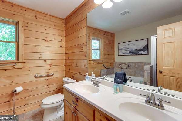 This sweet cabin home is Priced to sell. Brand NEW Roof, HVAC, and Stackable W/D February 2026! Escape the hustle and bustle to this beautiful turnkey furnished cabin, perfectly situated on 2 private acres in the Coosawattee River Resort. Whether you're sipping your morning coffee on the spacious front deck, enjoying a glass of wine at sunset, or unwinding in the hot tub, this home offers the perfect blend of comfort and tranquility. Seasonal River View. River is Accross the road. Step inside to cathedral ceilings with exposed wood beams, a warm mix of knotty pine and drywall, and stunning wood and tile floors. The open-concept kitchen features granite countertops, a pantry, and modern appliances, making it perfect for entertaining. The main-level primary suite boasts a jacuzzi tub, separate shower, and double vanity. Downstairs, the finished basement offers two additional bedrooms, a full bath, a den with a wood stove hearth, and a game room with ping pong and plenty of space for guests! With ample parking, log siding, and an architectural shingle roof, this well-maintained home has been gently used as a second home and Airbnb. Don't miss this incredible opportunity to own a fully furnished, move-in-ready mountain getaway! Owners use the cabin and offset expenses with short term rental. Resort full of amenities to enjoy!