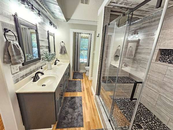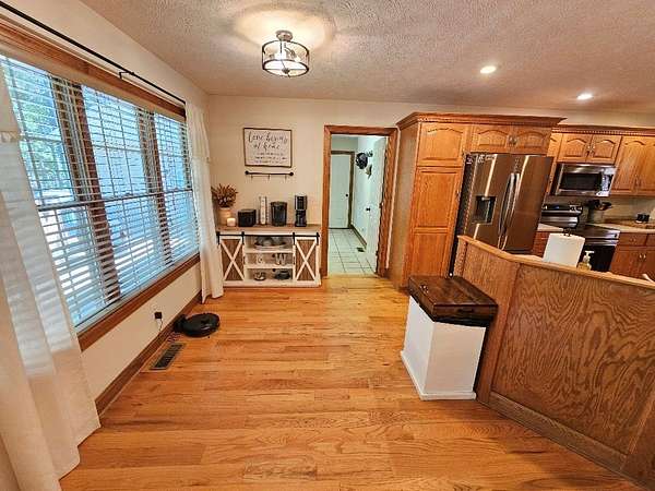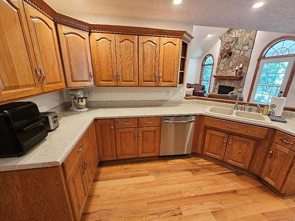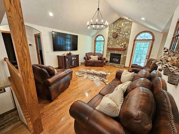 Don't miss this rare opportunity to own a stunning and spacious custom-built 4-bedroom, 3.5-bath home, designed for comfort, functionality, and style. Step into a grand living area featuring vaulted ceilings and a beautiful stone gas log fireplace, ideal for relaxing or entertaining. The formal dining room boasts an elegant tray ceiling, while the kitchen-complete with solid wood cabinets and a cozy breakfast nook-seamlessly connects to both the living and dining areas and all major appliances convey. The luxurious master suite offers a custom tile shower and a walk-in closet for all your storage needs. Two additional bedrooms are conveniently located on the main level, along with a private mother-in-law suite featuring its own kitchenette. Enjoy the beauty and durability of luxury vinyl plank and hardwood flooring. The mostly finished basement includes a large den, a fourth bedroom, and a full bath, perfect for guests or extended living. Car enthusiasts and hobbyists will love the 54' X 30' 4 to 6 bay climate-controlled garage with insulated doors, wash bay and bar area. This home also has a heat pump, and three mini-splits for year-round comfort. A Culligan water system adds peace of mind. Outdoor amenities include a spacious back deck for entertaining, a charming covered front porch, a fenced backyard, and a newly paved driveway-all nestled on a generous 1.85-acre lot. This home truly has it all-a true must see! Call Today!