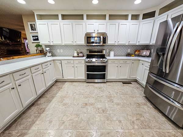 - Dishwasher, Microwave, Oven, Range, Refrigerator, Stainless Steel Appliance(s)