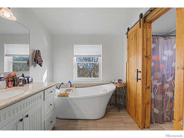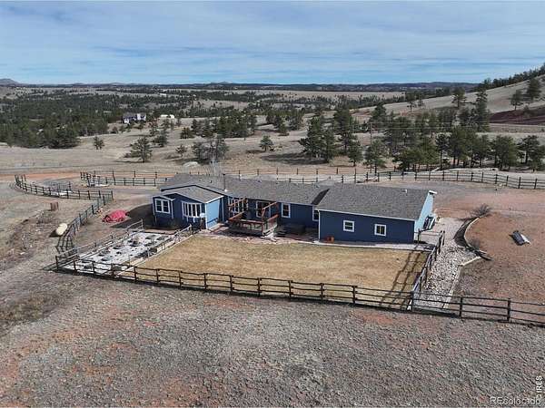 You can and should come see it for your self! This 35+ acre paradise offers a true escape where you can enjoy independence, solitude, peace & quiet & a true Colorado country life! This unique property is gated, fenced & cross fenced w/ 3 pastures, a dedicated garden area, a fenced acre for your 4-legged friends to run & play, & has a large barn, tack room, loafing shed, & more! The hard work is done! Inside, the welcoming entry opens to a vaulted great room w/ skylights & incredible views to your acreage, the mountains & beyond. The entry makes a great place to kick off your shoes when you arrive home & the wood stove in living room warms the space beckoning you in! Great room & dining area have pub hickory wood floors. Gather in the large kitchen & enjoy the gas range, new appliances, new tile, new sink & faucet, & you'll love the custom butcher block countertops! This 5 bed, 3 full bath, split ranch style home has been carefully renovated & has all the right spaces! Off the primary suite you'll find a luxury 5 piece bath w/ a free standing tub, double vanities, a walk in closet & a private office/bonus space w/ wood floors under carpet! Secondary beds are large & comfortable, all bathrooms have been substantially re-finished, there is walk in laundry room & walk in pantry. A top features of this home is the 1200 sq ft garage w/ a new 7' high door & a new 8' door, new automatic openers, a huge dog run/kennel, and space for all of your toys! Interior & exterior were re-painted within the past 3 years, furnace replaced 3 years back & A/C just 4 years ago! Most all windows are new! Outside you will find a new deck (2 years), a protected area for a fire pit, a fenced yard w/ new sod & sprinkler, a hot tub patio, & a generator hookup. This home has a good producing well & a septic that was just pumped & inspected. Don't miss the huge crawl space with 8' ceilings (photos available). Just off county maintained road - is 223 Timber going to be your new home sweet home?