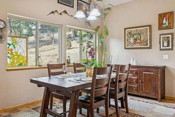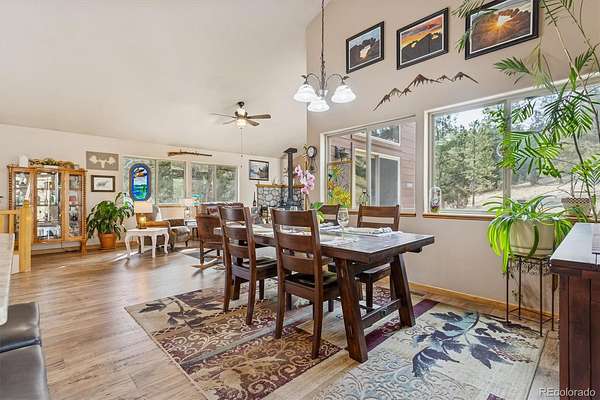 A rare opportunity to own a true Colorado horse property just beyond the Front Range, where usable land, water security, and equestrian infrastructure come together on 3.5 thoughtfully designed acres. Ideal for Denver and out of state buyers ready to trade congestion for open skies, this Foothills property is not just acreage, it is fully equipped for the horse lifestyle. Even more compelling, the home offers the potential for a 2.375 percent VA assumable loan for qualified buyers, an exceptional financing advantage in today’s market. The land is functional and ready from day one, featuring a lean to shelter, tack shed, round pen, corral, second pasture, and a riding trail that runs directly through the property, allowing you to ride out without loading a trailer. A domestic well is supported by two additional water shares through Mountain Mutual Reservoir Company, providing meaningful water security for animals and land. The 70’ x 30’ RV pad with electric and water hookup adds flexibility for horse trailers, guests, or additional utility use. Inside, vaulted ceilings and abundant natural light create a warm mountain retreat anchored by a wood burning stove in the open living area. The kitchen features granite countertops, stainless steel appliances, custom cabinetry, and a spacious island designed for gathering. Recent improvements include a new furnace in 2025, new flooring in 2024, and a new back deck in 2024. With high speed internet available through Starlink and Highline Fiber, remote work is seamless. If you have been searching for a horse ready property with usable ground, established infrastructure, strong water rights, and the privacy of mountain living within reach of the Denver metro, 2230 County Road 72 delivers a rare blend of lifestyle and opportunity.