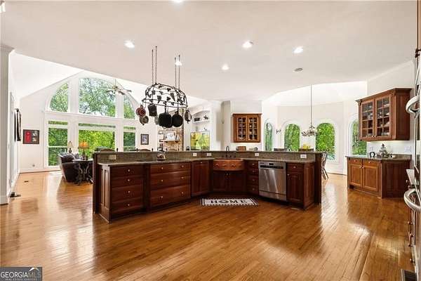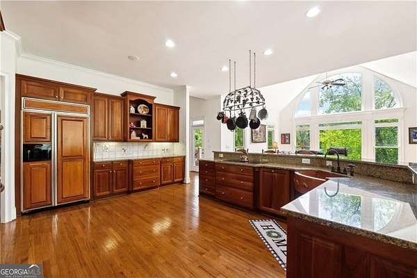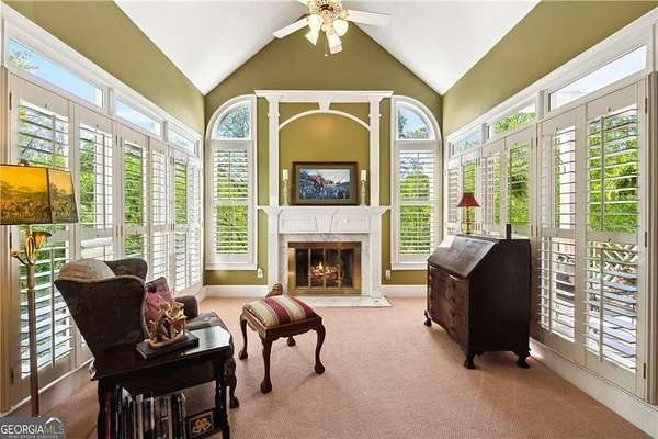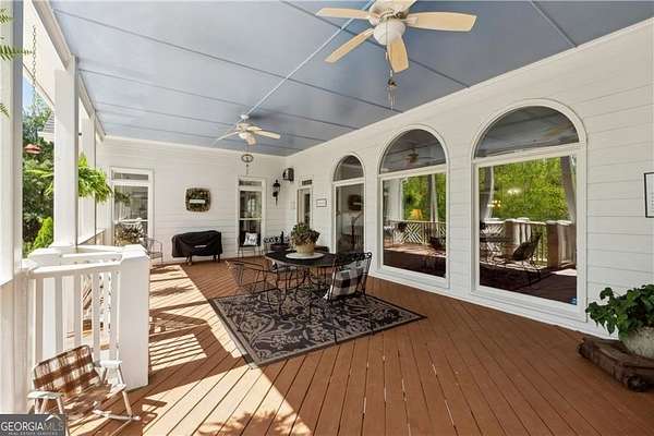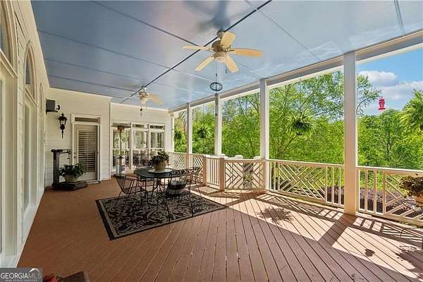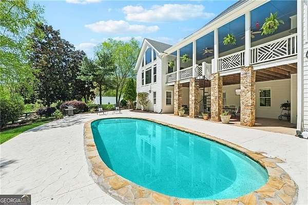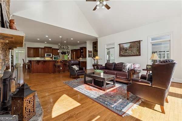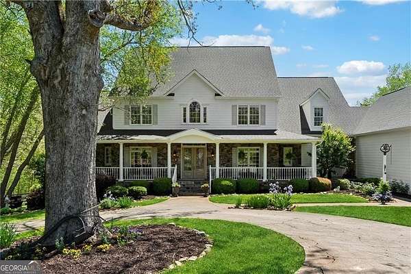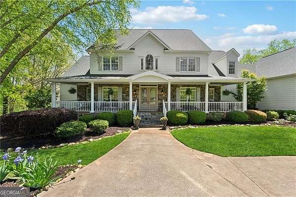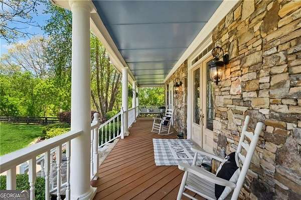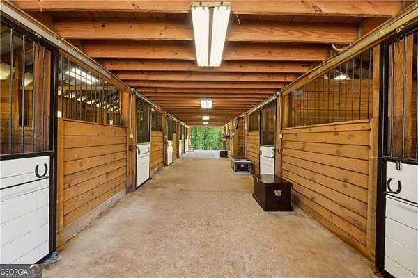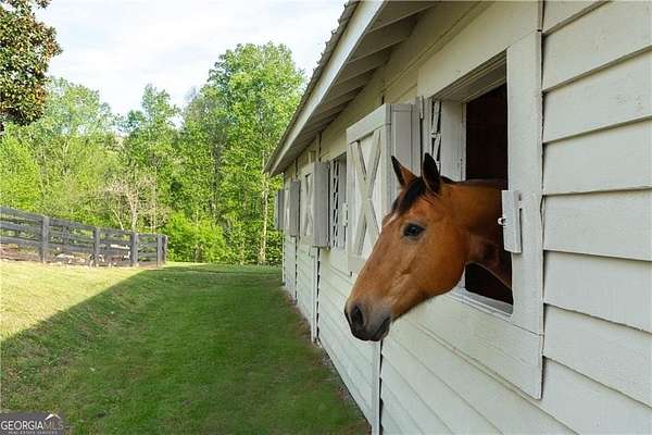 Exquisite Equestrian Estate in Ball Ground, Georgia. Nestled on over 20 acres of pristine pasture, meadows, and woods, this magnificent horse farm offers both luxury and tranquility. The 8,968 sq ft home showcases meticulous craftsmanship with soaring ceilings, elaborate woodwork, and expansive windows that flood the interiors with natural light, enhancing the home's grandeur. The residence features 6 beds, 6 full baths, and 2 half baths, including a serene primary suite on the main level with vaulted ceilings, plantation shutters, a cozy fireplace, an office, a spacious bath with double vanities, a walk-in shower, a jetted tub, and large walk-in closets. The gourmet kitchen is a culinary dream, equipped with double ovens, a cooktop, custom copper sinks, granite countertops, and a generous island with a breakfast bar. Adjacent to the kitchen, the spacious keeping room features a cozy fireplace and large windows that provide serene views of the pool, riding arena, barn, and ponds with waterfall feature. The upper level is well-appointed with 3 full bedrooms, each with its own ensuite bathroom, ensuring privacy and comfort for family and guests. This level also includes a versatile flex space that can function as a media room or home office, tailored to meet your lifestyle needs. The terrace level is thoughtfully designed for both functionality and leisure. It boasts a massive, fully-equipped secondary kitchen, perfect for entertaining or accommodating extended guest stays. Adjacent to the kitchen, the dining area and cozy living room form a seamless and inviting space for gatherings, with direct access to the pool area enhancing the flow of indoor-outdoor living. This level also includes a bedroom complete with a full bathroom. Additionally, the terrace level has ample storage space and a walk-out workshop, adding practicality and convenience to its amenities. Adding to the home's versatility, the studio apartment above the garage provides additional living space, complete with all necessary amenities for privacy and comfort. Furthermore, the residence has a whole-home sound system that delivers high-quality audio throughout, creating an ideal ambiance for intimate evenings and large-scale gatherings. The grounds are a paradise for equestrian enthusiasts, featuring an 11-stall barn with mats and fans, a hot and cold wash stall, a tack room, a feed room, and a large loft perfect for storage or as a lounge. The property includes 2 large established fescue pastures, 3 paddocks, and a 200'x100' riding arena with all-weather footing, surrounded by picturesque woods and apple trees. Beyond the riding arena, an enchanting meadow and a gently babbling creek offer a scenic backdrop, perfect for home bonfires or a tranquil camping experience. The home's outdoor living spaces are thoughtfully designed for relaxation and enjoyment. They feature a stunning front porch ideal for serene evenings and picturesque pastoral views. In the rear, expansive deck and porch areas overlook an inground pool set against a backdrop of professional landscaping. Beautiful waterfalls and ponds further enhance the backyard setting, creating a tranquil and inviting atmosphere. This incredible property offers convenient access to local amenities, with Kroger just 3 miles away and downtown Ball Ground and Canton within a 15-min drive. Also less than 15 mins, Interstate 575 is easily accessible, facilitating an easy 50-min commute to Atlanta. The property is zoned for the highly sought-after Creekview High School, enhancing its appeal for families. This unique estate is more than just a home; it's a lifestyle. Offering everything necessary for luxurious and convenient country living along with equestrian pursuits, this property ensures a serene and private setting for a truly tranquil lifestyle.
