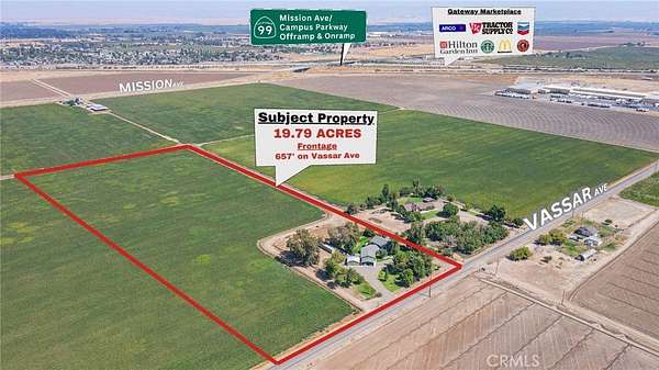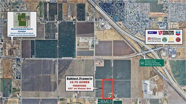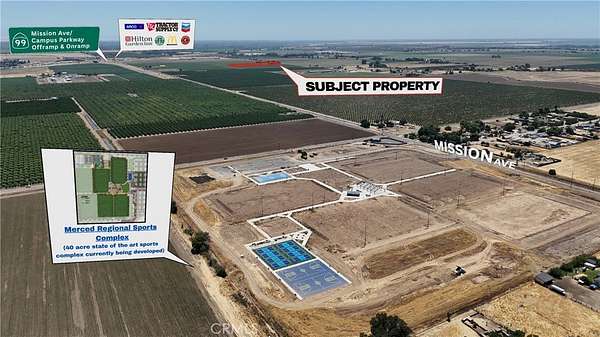Location, Location! This 19.8-acre parcel with a beautiful 3,190SF ranch home is part of a 161+/- acre family ranch in the path of development which could be purchased together. Strategically located w/in close proximity to Hwy 99 and the newly developed Campus Expressway overpass, a direct route to UC Merced. The property is also located within the "Merced Vision 2030" SUDP Boundary, making it well positioned for future growth demand. Future possibilities could include commercial, industrial or residential development for this underserved market area. Also, in close proximity is the Gateway Marketplace, the newest regional commercial development project currently underway. The Gateway Marketplace includes major retailers such as Tractor Supply, Starbucks, McDonald's, Arco, Chevron and a Hilton Hotel/Convention Center. The city of Merced just broke ground on a 40-acre sports complex just down Mission Ave, dubbed Community Park 42, a REGIONAL sports complex, allowing for large scale tournaments, concerts, and events. Land running along Mission Ave is quickly becoming the object of attention as residential communities and city infrastructure is being brought further south to accommodate the city's massive growth and grossly underserved commercial/industrial/residential needs. This parcel is also adjacent to Yosemite Wholesale, a 220,000SF distribution warehouse. As the city of Merced determines its need for commercial, industrial and residential land necessary to accommodate its quickly growing population and a growing UC Merced, this could be the best timing to acquire development land.