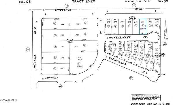 Est $158/mo22300 Rickenbacker Ct by Lindbergh Blvd, California City, CA 93505APN: 216-082-06For sale is a an almost 10,000 sq feet (.224 of an acre) vacant lot in the C2 Community Commercial District/airport area of California City. According to the California City GIS Map this property is zoned as C2 or in the Community Commercial District. This zoning allows many retail and other commercial uses. This property is in the path of commercial development. GPS Coordinates: 35.146819, -118.009032
