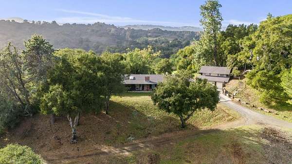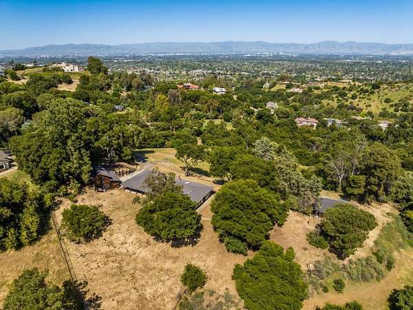 Awe inspiring vistas spread before you from this majestic knoll top setting. Just under 5 acres, this exceptional legacy property offers commanding views to the east affording sunrise, moonrise, city lights and occasionally snow-capped hills. Southern exposure has views of Saratoga Country Club while to the west experience evening sunsets over the open space preserve. This stunning and unique property surrounded by mature trees boasts a setting that epitomizes tranquility and natural beauty, a peaceful retreat from hustle and bustle of the valley yet minutes to town, schools and major commute arteries. Included are a main house with 2 bedrooms plus a den/office, ready for reimagining, 3-car garage with studio apartment above and a barn perfect for hobbies. Explore the possibilities of a vineyard. California's SB-9 (Senate Bill 9) provides the framework for a potential subdivision into two parcels offering flexibility for future development. Walk/bike to Fremont Older Open Space Preserve & Saratoga Country Club. Labeled photos & a video on the website show the property well. Property has public water, sewer, fiber optic and propane. You cannot see the house from the road. House is occupied. Do not walk the property.