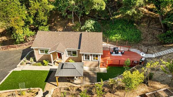 Tucked in a peaceful Cupertino valley, this exceptional estate spanning two parcels offers a rare blend of privacy and natural beauty. A unique opportunity for future flexibility while enjoying a serene lifestyle today. The main home features 2 bedrooms and 2 bathrooms, thoughtfully designed with large windows, custom finishes, and beautiful natural light. The updated kitchen includes granite counters, stainless steel appliances, and ample cabinet space. A vaulted den opens directly to the outdoors, blending indoor and outdoor living. Spacious primary suite features ensuite bath with stall shower and double sinks. Enjoy terraced gardens, a raised patio with turf and gazebo, a fruit orchard, and a private trail that leads to stunning valley views. Despite its completely natural setting, this home is just a short drive to Main Street Cupertino, Vallco Shopping Mall and Apple. Top-rated Cupertino schools, Blue Hills Elementary, Kennedy Middle & Monta Vista High. Quick access to hiking trails, mountain biking, horseback riding and more. Two parcels: one for main house lot 5.85 Acres, the other for vacant land 16,950 SqFt.