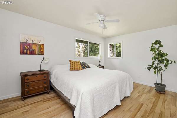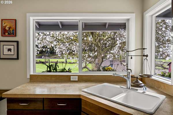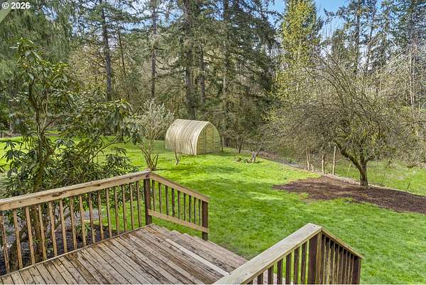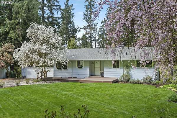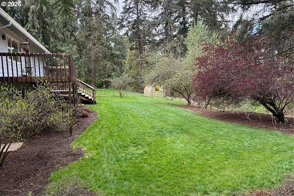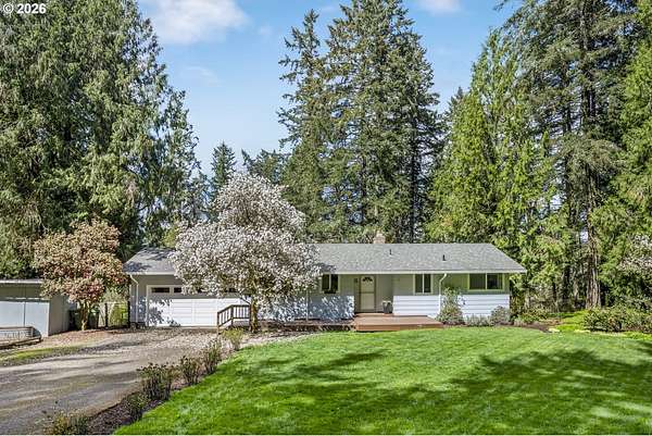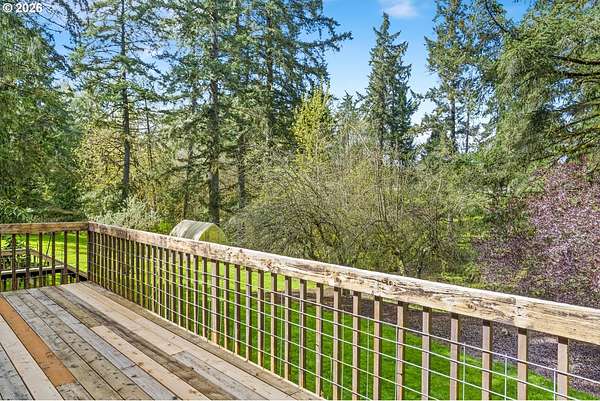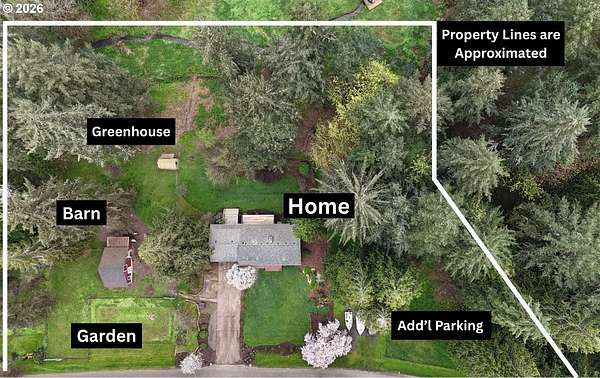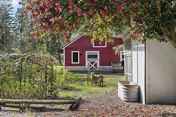 Open House Saturday 4/11 from 12:00-2:00! One of the best locations in Wine Country, a quiet rural setting, beautifully treed, on manageable acreage with a 2158 sqft home, large deck off the main level that leads to a fenced backyard, barn, garden area, tons of parking and just three minutes to Downtown Dundee and four minutes to Downtown Newberg. The home has been consistently maintained and is set back from the road, almost central on the property, creating space between neighbors. It spans two levels, each with two bedrooms, one bathroom, a living space and a pellet stove. The main level has true wood floors throughout the updated kitchen, dining room, living room and one bedroom (the other main level bedroom has new carpet). Both upstairs and downstairs bathrooms have been recently renovated with floor to ceiling tiled walk-in showers, new vanities and toilets. Downstairs has new carpet throughout the family room, hall and both bedrooms. The laundry room is oversized with a built-in sink, built-in shelving and plenty of counter space. The acreage contains a plethora of mature trees, some fruit producing, some that bloom bright colors and others that are old giant firs, all of them inviting in native birds that bring the sweet murmurs of nature. A garden area and barn with a separate fenced pasture give the possibility for your perfect little hobby farm. And of course there is plenty of parking throughout the property, including two spots in the attached garage that recently got a new garage door. This is a place you'll want to spend time at to take in its true peaceful and quiet setting. Schedule a showing come to experience it in person.