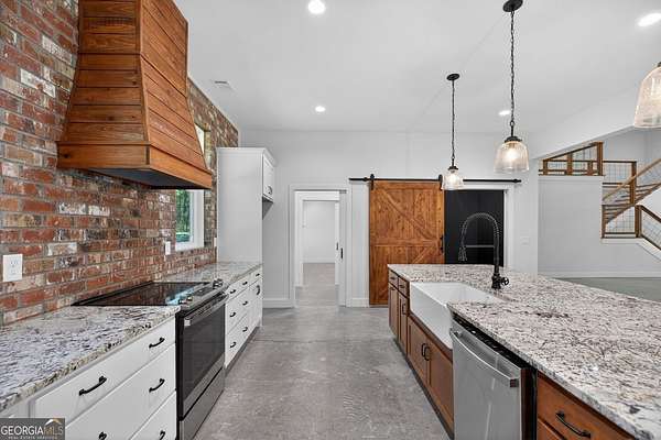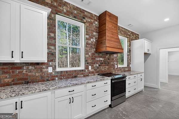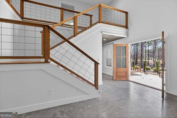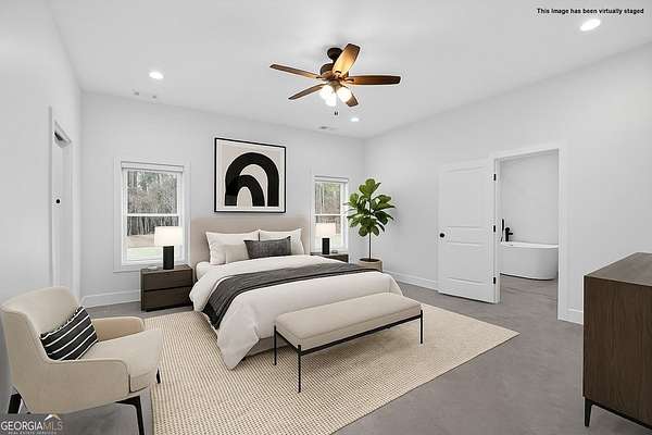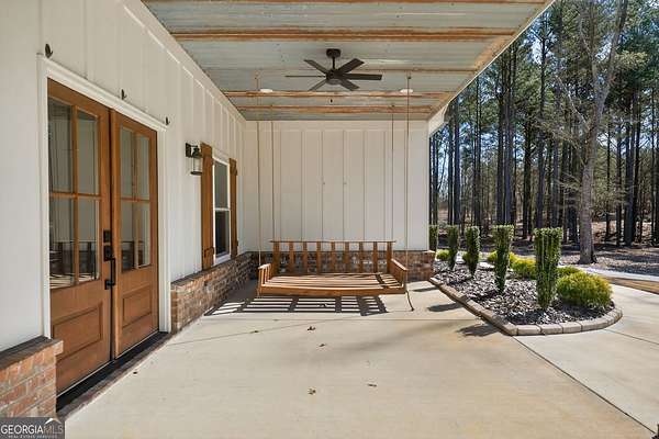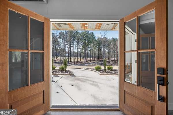 Set on nearly 7.5 acres, this elegant 4-bedroom, 4.5 bath home offers refined living with the perfect balance of seclusion and convenience. A striking double front door welcomes you into the home, while the covered front porch with a swing provides an inviting space to relax and enjoy the peaceful surroundings. Inside, the living room features a beautiful brick fireplace, anchoring the space with warmth and timeless style. The chef's kitchen is thoughtfully designed with granite countertops, stainless steel appliances, a large island with a breakfast bar, and a walk-in pantry, ideal for both everyday living and entertaining. The main level is designed with 36-inch-wide doors, offering enhanced accessibility throughout. The primary suite, located on the main floor, serves as a true retreat with a spacious walk-in closet, dual vanities, a tile shower, and a separate soaking tub. A one-car garage adds convenience, and despite the private setting, the home is located just six miles from Adamson Square, offering easy access to shopping, dining, and entertainment.