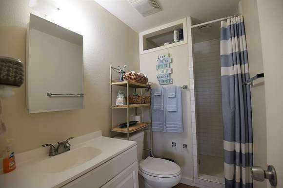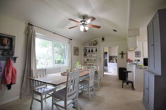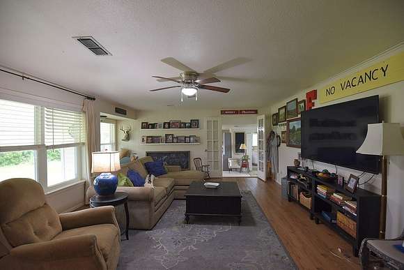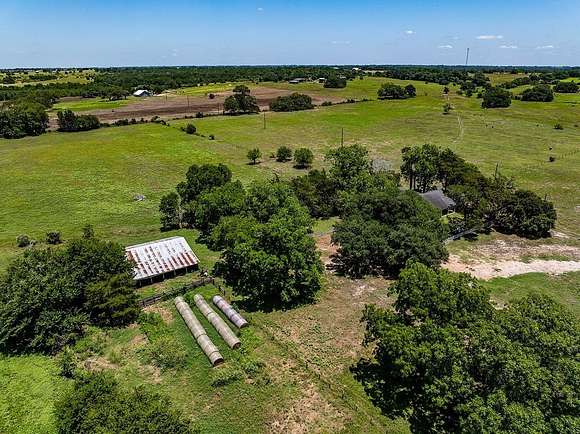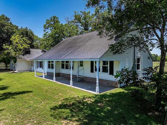 IMPROVED PRICE, MINERALS, WEEKEND RETREAT, PERMANENT COUNTRY HOME OR INVESTMENT OPPORTUNITY! This two bedroom, two and one-half bathroom, charming home is nestled among mature trees on 53 lush acres, centrally located between Houston, San Antonio, and Austin. Explore nature along the west property line, Middle Creek, a live creek with beautiful woods. Click the video link for a gorgeous view of the creek! This tract features a barn, hay meadow, pond, and cross-fencing. The remodeled home has central air and heat, vinyl siding, and updated windows. The living area has French doors that open to a few steps down to a guest bathroom and dining area, which is open to the kitchen. This space leads to the large utility room, half bath, and two car garage. Oversized windows in the dining room and living room capture natural light and outdoor views. On the other side of the living room, a hallway leads to two bedrooms and a split bathroom with double sinks and a private area for the shower and toilet. Whether you are looking for a weekend getaway, permanent residence, or investment opportunity, please contact Hollas Real Estate to view this property. Please call Hollas Real Estate for further information or to schedule an appointment. 24-hour notice required.