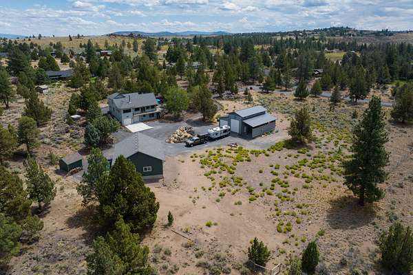Located in the Sundance community, this 3.29 acre property offers privacy, functionality, and sweeping Cascade mountain views. The 3 bedroom, 2.5 bath home captures impressive vistas from the main living area and primary bedroom. Outside, two separate shops provide versatility: Shop One is 1,280sf, and Shop Two is 1,344sf - ideal for projects, storage, or recreational equipment. The property could easily be modified to accommodate horses. Multiple full RV hookup sites are in place, making this an excellent setup for RVs, guests, or extra storage needs. The fully fenced lot includes an electric gate with remote access. A hillside hot tub offers a quiet retreat with its own view, while community access to adjacent BLM land makes exploring the outdoors easy. With space for hobbies, toys, and outdoor living, this property blends acreage, views, and shop space in a convenient location near Bend.