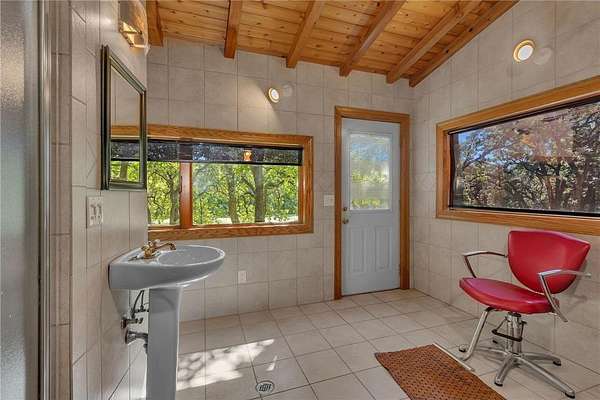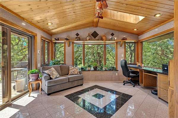 The home itself is designed for both comfortable living and entertaining. An open kitchen, dining, and living area provides connected space for gathering, highlighted by an impressive 8x5 ft kitchen island. A four-season porch leads to a spacious deck where you can relax and soak in the sights and sounds of nature. All three bedrooms are on the same level with 2 bedrooms offering nice sized walk-in closets. Bonus: steam shower for spa-like comfort, plus a special lakeside space just off of the home is hot tub ready!