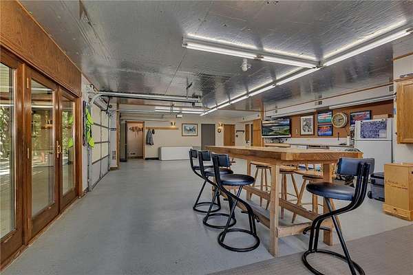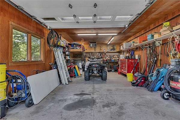 Storage and hobby space abound with an oversized three-stall attached garage (part of which is currently set up as an additional entertaining area) plus a detached one-stall garage. If you've been looking for lake life with land, this property is it!