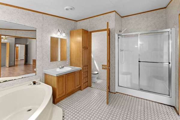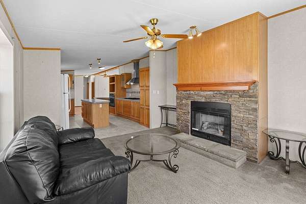 - Bedroom On Main Level, Ceiling Fans, Entrance Foyer, Kitchen Island, Main Level Primary, Primary Suite, Separate Formal Living Room, Skylights