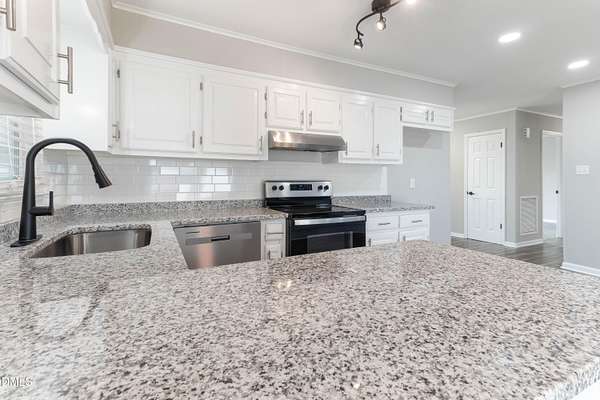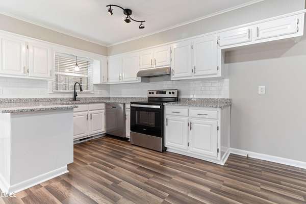 - Dishwasher, Electric Range, Exhaust Fan, Stainless Steel Appliance(s)