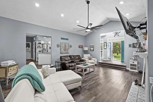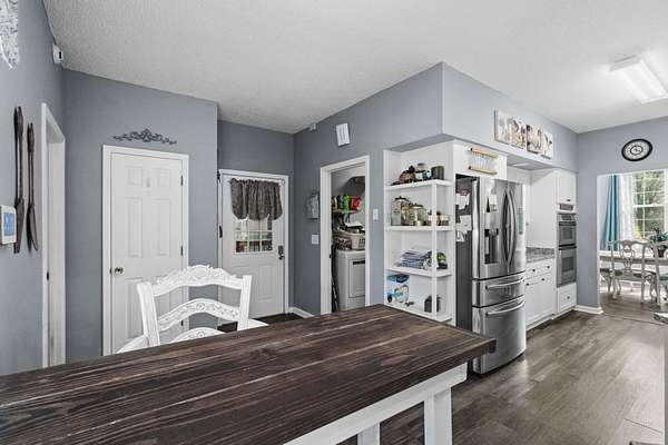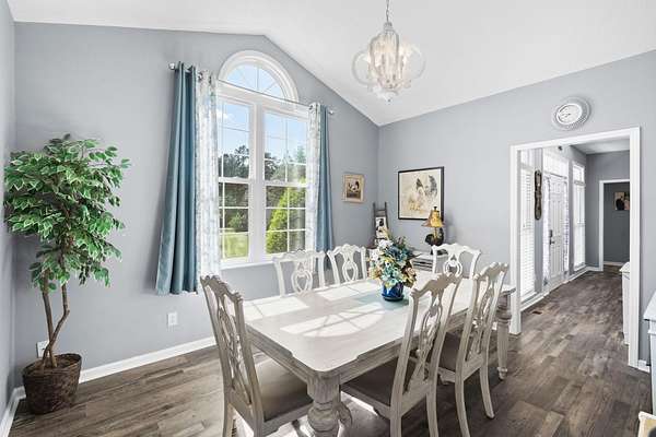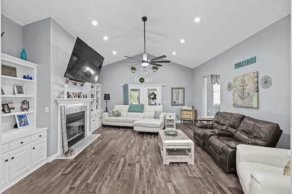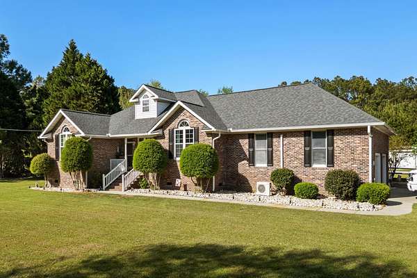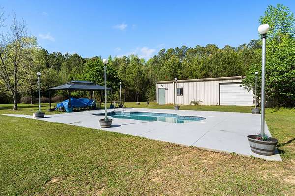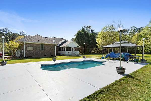 Don’t miss out on this incredible home! This beautiful all-brick 3-bedroom, 2-bath home sits on nearly 6 acres and offers a bright, spacious floor plan perfect for comfortable living. The living room features vaulted ceilings, custom built-in shelving, and a stunning fireplace. The kitchen includes white cabinetry, a new backsplash, a pantry, and a cozy breakfast nook. The primary suite offers 2 large walk-in closets and a spacious private bathroom. The home also has a formal dining room that could easily be converted into a bonus room or additional bedroom. Step outside to enjoy the custom back porch with a relaxing patio. The backyard features a saltwater swimming pool, creating the perfect place to relax and enjoy the outdoors. There is also a huge 1,400-square-foot storage building wired for 110 and 220 with three roll-up bay doors, ideal for a workshop or extra storage. While offering privacy and space, this property is still conveniently located minutes from the beach, Historic Downtown Conway, restaurants, shopping, and more. Schedule your showing today!