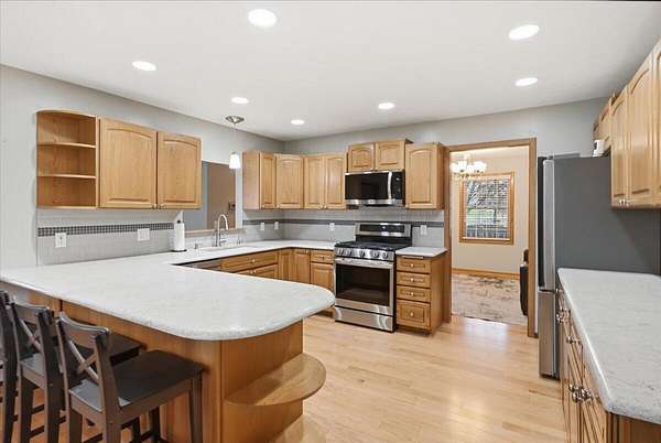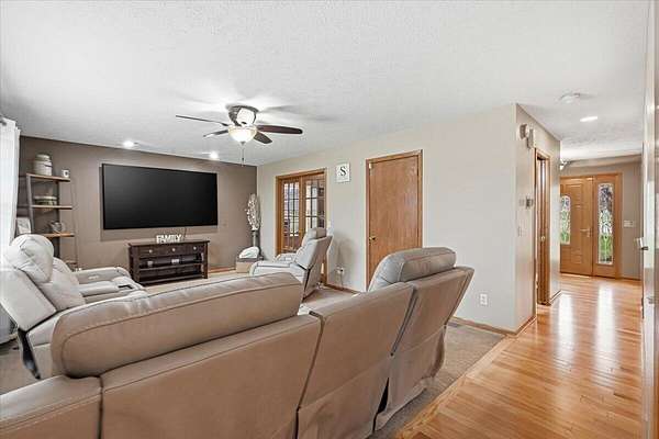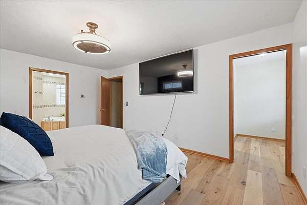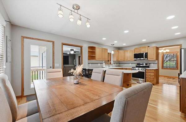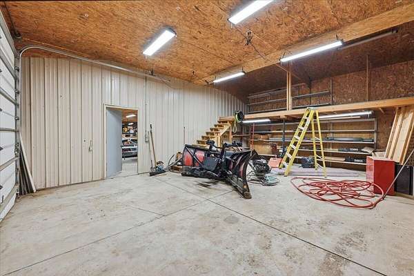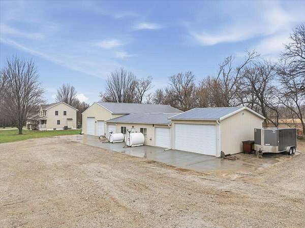 Located on 2.67 acres in the Underwood School District, this acreage offers a hard-to-find combination of functional living space and a 4,600+ sq ft outbuilding. The main floor features hardwood floors, a spacious kitchen with solid surface countertops and a tasteful backsplash, plus a dedicated office with French doors. Upstairs, you'll find a large primary suite with a walk-in closet and full bath with tub, along with the convenience of second-floor laundry. The finished basement adds add'l living space with a family room, non-conforming 4th bedroom, and generous storage areas, plus a separate exterior entrance. Outside is where this property really stands out--the 4,600+ sq ft outbuilding offers endless potential for hobbies, storage, or equipment. All just minutes from town!