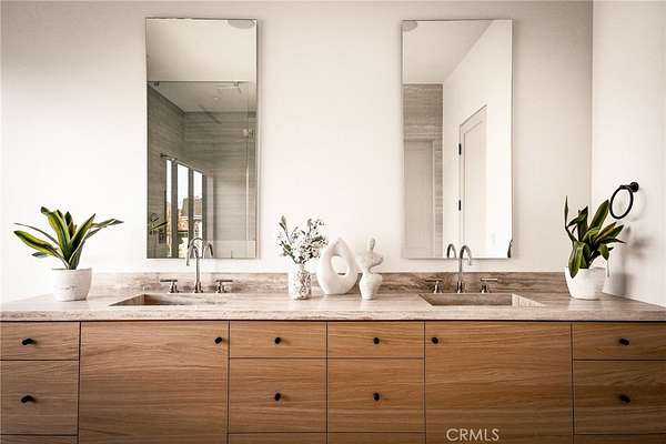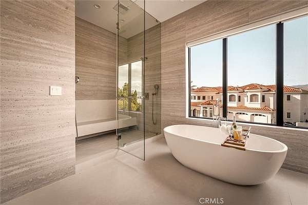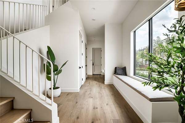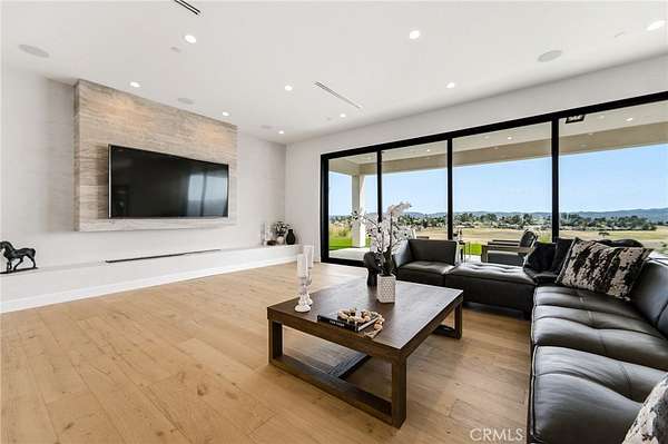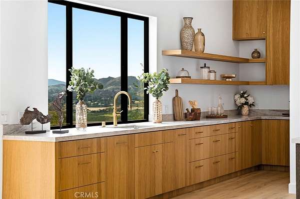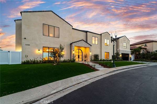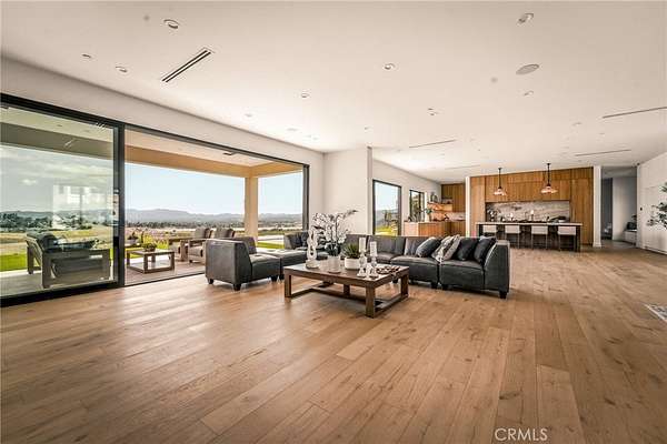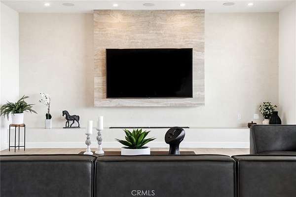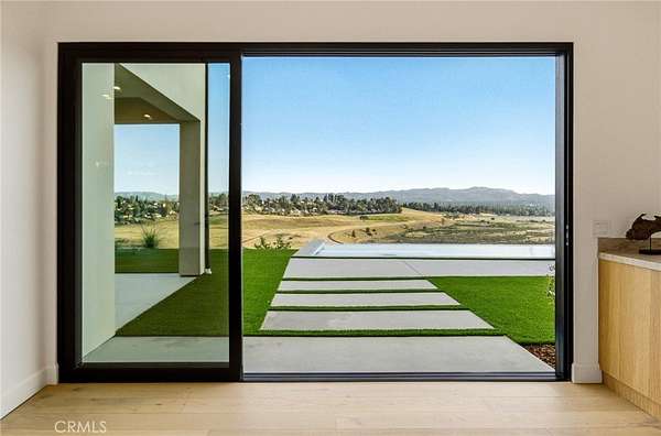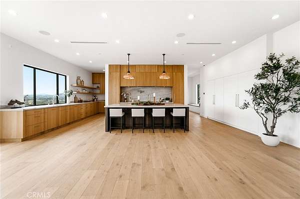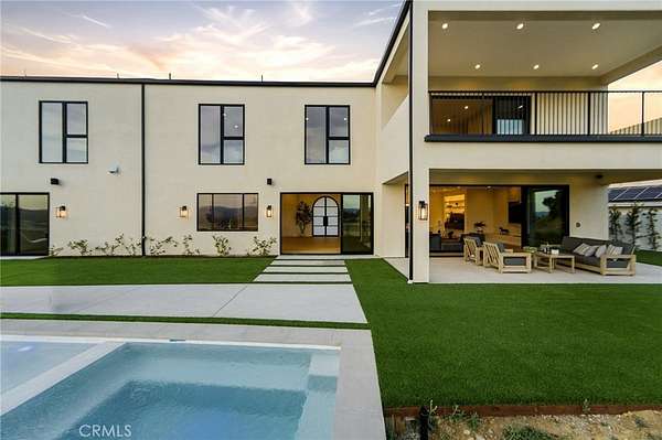 The formal dining area showcases custom built-ins, while the expansive living room is anchored by a sleek modern fireplace and opens effortlessly to a one-of-a-kind European-style chef’s kitchen. This culinary space is outfitted with a large center island, premium built-in appliances, and a hidden spacious walk-in pantry—perfect for hosting at any scale. Walls of sliding glass doors flood the home with natural light and create a true indoor-outdoor experience, opening to spectacular views and inviting outdoor living spaces. The luxurious primary suite is a private retreat, complete with a covered balcony, dual walk-in closets with custom built-ins, and a spa-inspired bathroom featuring natural stone finishes, designer fixtures, soft ambient lighting, and a serene, resort-like ambiance. Step outside to a resort-caliber backyard designed for ultimate entertaining, featuring a covered patio with built-in heaters, a custom outdoor BBQ area, and a stunning infinity-edge heated saltwater pool and spa—perfect for enjoying sunset views in total privacy. Additional highlights include soaring ceilings, wood flooring throughout, Italian tile finishes in bathrooms, a fully integrated surround sound system, security cameras, smooth stucco exterior, over 860sqft of covered patios and a three-car garage with direct access. Residents of this exclusive guard-gated community enjoy 24-hour security, private trails, and a peaceful, elevated lifestyle just minutes from premier shopping, dining, and entertainment (Westfield Mall & The Village At Topanga). A true escape within the city—private, sophisticated, and designed to impress.