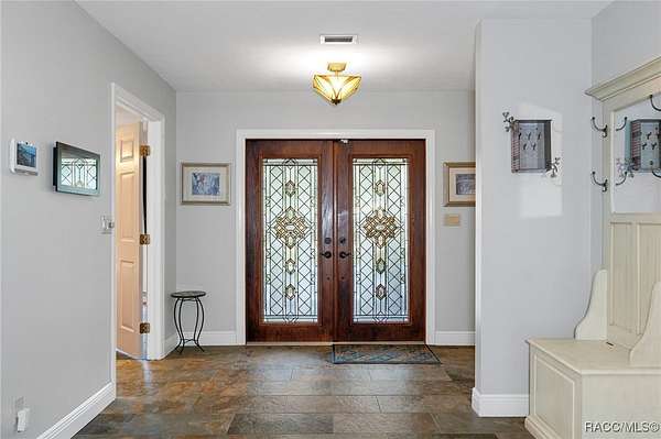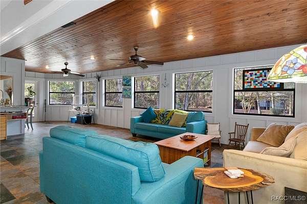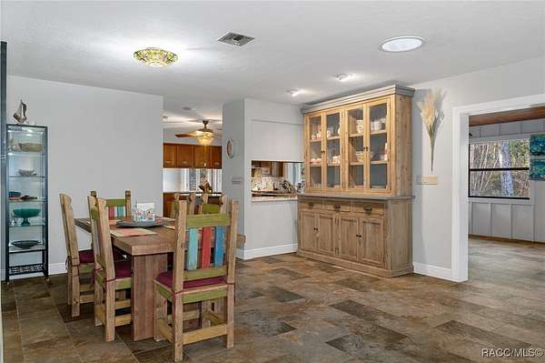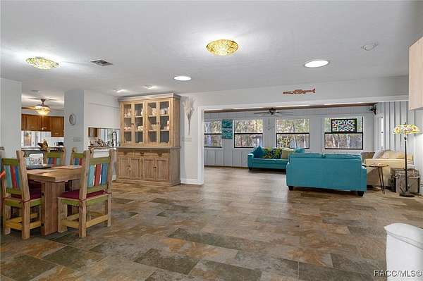 Nestled north of Brooksville off Snow Memorial Highway, this beautifully remodeled ranch-style home sits on 4.9 acres of very wooded fenced acres in Retriever Oaks, an exclusive gated community of just seven lots, and at the end of a cul-de-sac. Surrounded by mature magnolia, live oak, hickory, and pine trees, the home offers privacy, natural beauty, and thoughtful design. Inside, you'll find slate floors, wood-inlaid ceilings, custom wood cabinetry, and granite countertops. The spacious layout includes a large master suite, two guest bedrooms with walk-in closets, two family rooms, a dining area, open kitchen, and office space, all filled with natural light from double-pane windows that are wall to wall. Outdoor features include a beautiful brand-new paver back deck, attached two-car garage, and a 23' x 29' freestanding workshop. Recent 2024 upgrades include a new well pump, dual AC system, water heater, water softener, whole-house water filtration with reverse osmosis, kitchen appliances, tile flooring, cordless blinds, alarm system, and re-laid pavers at the front entrance-making this a move-in ready retreat that blends comfort, functionality, and peaceful country living.