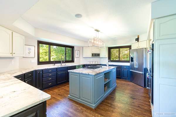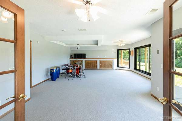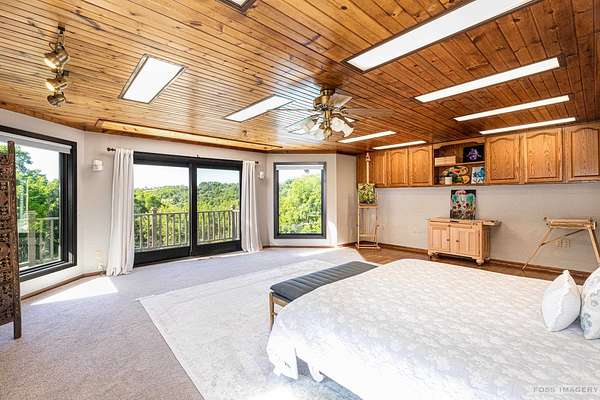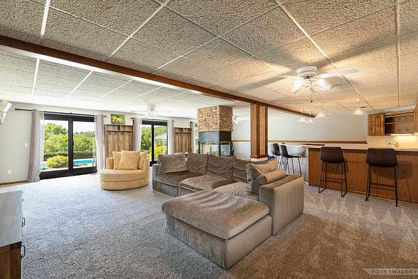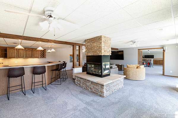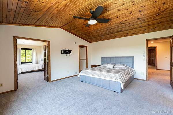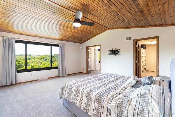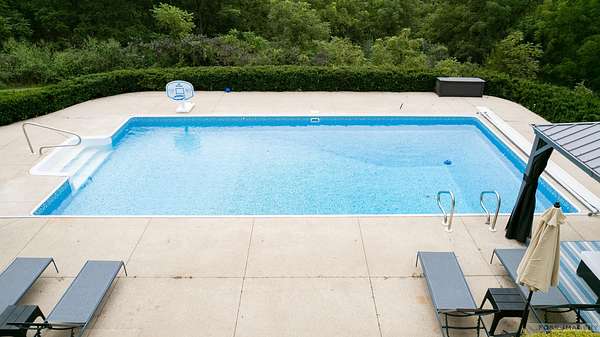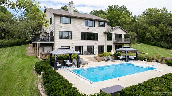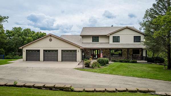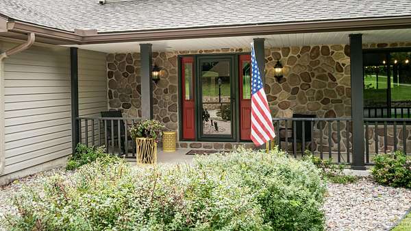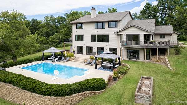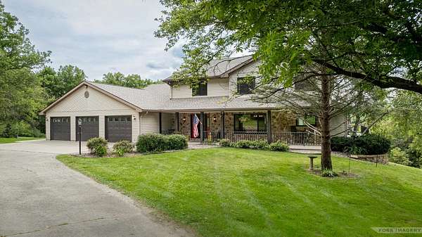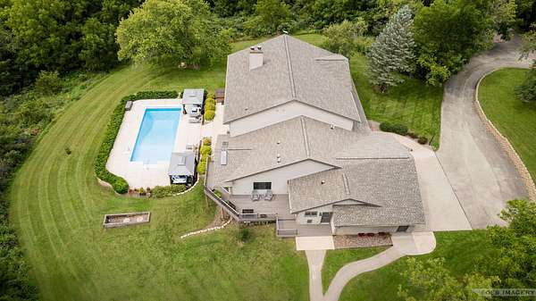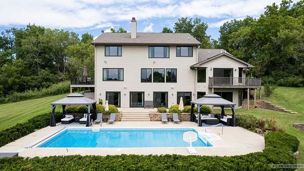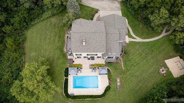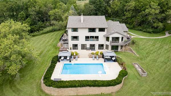 Breathtaking views surround this executive retreat on 15+ private acres just outside Mt. Horeb. The kitchen boasts a large island, dbl ovens, gas cooktop, breakfast bar, beverage fridge & walk-in pantry. A cozy family room opens to the deck, while the formal living rm centers on a gas fireplace. An expansive den/office offers flexibility. Upstairs, the primary suite impresses w/a soaking tub, tiled shower & dbl vanity, plus 3 add'l bedrooms. Walkout LL is ideal for entertaining w/ wet bar, game/exercise space & patio doors to the pool & hot tub. Main-level laundry, mudroom, 3-car garage & an outbuilding w/partial bath add convenience. Recent improvements include new roof, gutters, furnace, AC, heat pump, pool liner, windows, flooring, deck & railing. Enjoy wooded trails & endless privacy!