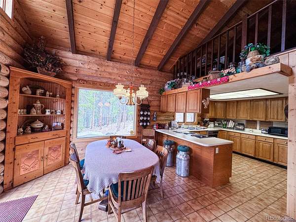 Experience true mountain living in this charming log-built home, featuring massive log beams and timeless rustic character throughout. Nestled on a private, treed 2-acre lot with peaceful surroundings and glimpses of mountain views, this property offers the perfect blend of seclusion and comfort.