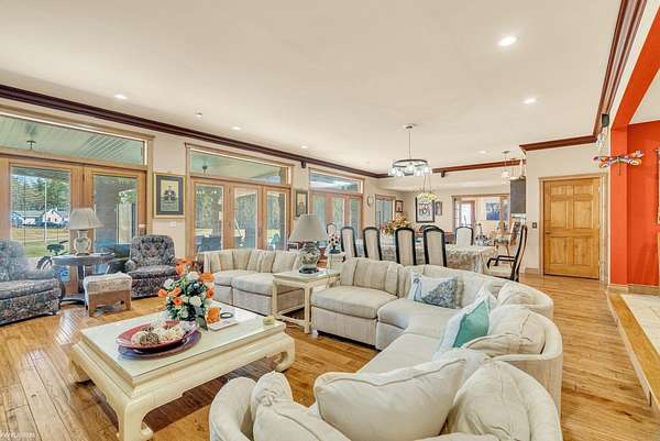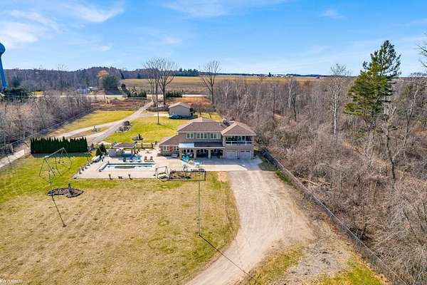The perfect house on the lake! This house has it all! This property has two houses and a pole barn and sits on 6.5 acres and it even has a creek running through the property. The first house is a really big house that even has it's own elevator! The inground pool and hot tub will make you feel like you are living in a resort everyday! The property has a huge fenced in yard with an electronic gate that opens after you put the code in (without you getting out of your car) The main house also has a whole house generator and geothermal heat. You will love going on your large elevated patio/balcony and looking out at the water in the morning. The owner uses the second house as a VRBO and it is currently set up as a duplex however it could easily be turned back into one house. The units are only separated by doors. Some features listed are only for one of the houses. SF is taken from public records and not guaranteed. Buyer to verify all information.