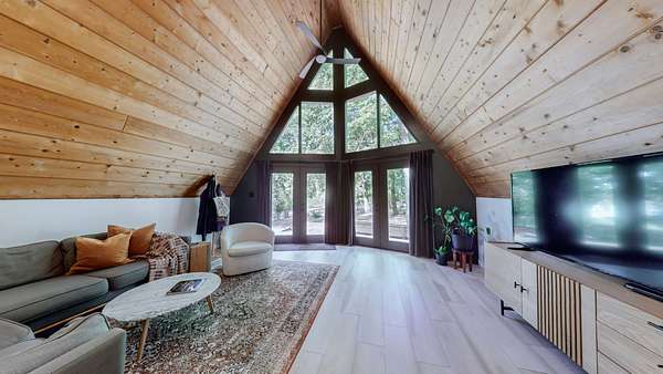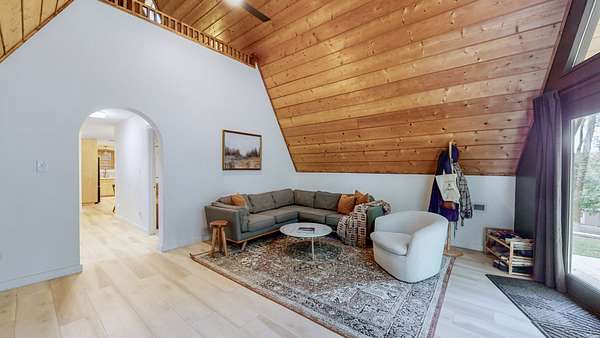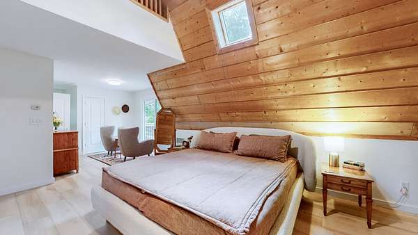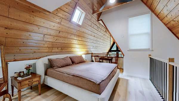 The lofted master bedroom features two private decks, while the main floor includes two bedrooms and a small flex room--perfect for an office or creative space.