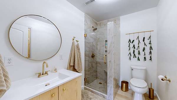 No detail was overlooked in this stunning remodel! Updates include custom cabinetry, quartz countertops, new appliances, marble walk-in shower, fresh flooring and paint, arched doorways, new stairs and windows, five spacious decks, board-and-batten siding, standing seam metal roof, retaining walls, gutters, plumbing, ductwork, HVAC system, and more!